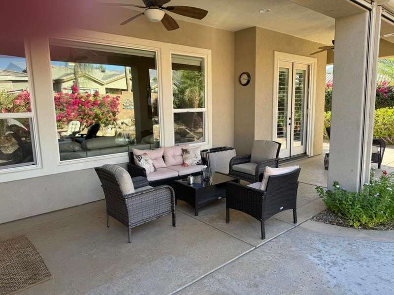 RENTED 12-1-2025 Thru 3-31-2026. Trilogy in La Quinta is a 55 and older community. This property is available for 3 months or more in 2026.This property is a Caspian floor plan. 2 bedroom Master has a king size bed. Guest has a queen. Plus an office ... Home shows like a model has 1775 sq ft. open floor plan. Private backyard on a corner lot. Mountain views, fire pit plus a spa for those evening to relax and enjoy the sunset.