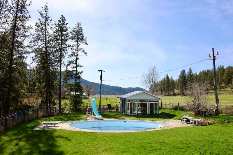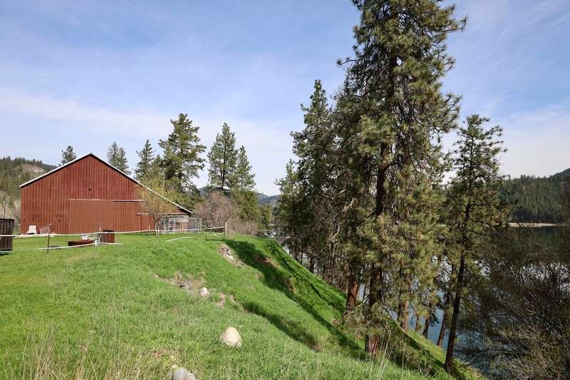 Scenic riverfront 47 acres in two large parcels on the bank of Lake Roosevelt, North of Kettle Falls with 1250 ft of riverbank frontage. A 1960’s 4 bdrm 3 bath farmhouse, barn, shop and assorted outbuildings. Multigenerational possibilities with room to build a second residence. The paved Northport Flat Creek Rd lies between the mountain portion and the riverfront for great year around access. Beautiful green pastures are fenced and cross-fenced, ready to go for horses or livestock of your choice. Sprinklers on the pastures. Partially timbered hillside with spectacular views looking over the ranch and river valley. House water is Spring fed. Large haybarn is all natural barnwood. The shop has a car lift set-up for the true mechanic. There’s an old log cabin that could be re-constructed or the logs could be salvaged for another project. Owner financing available on secondary parcel. Zoned RA-10. Within 2 hours of the Spokane International Airport.