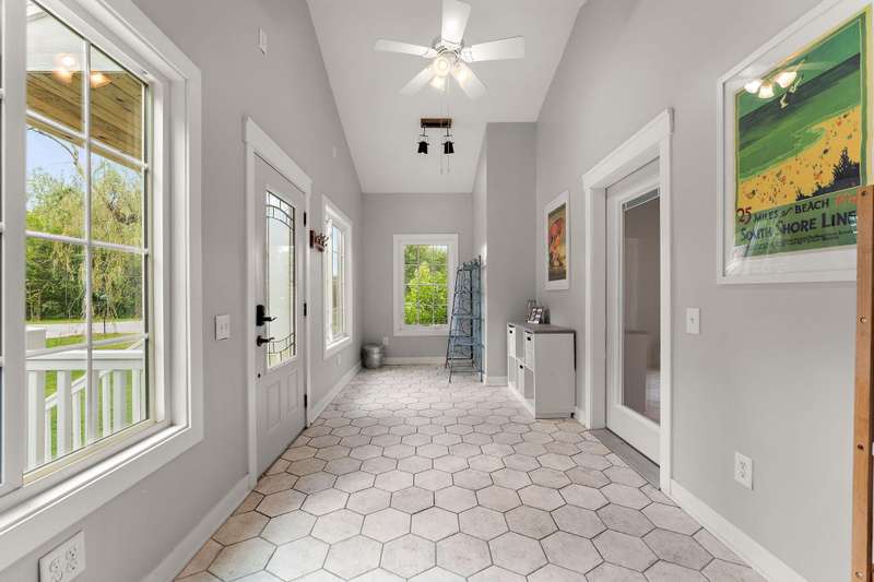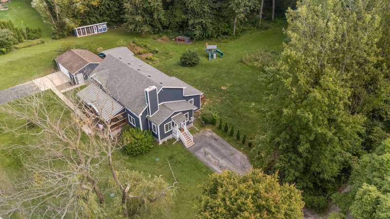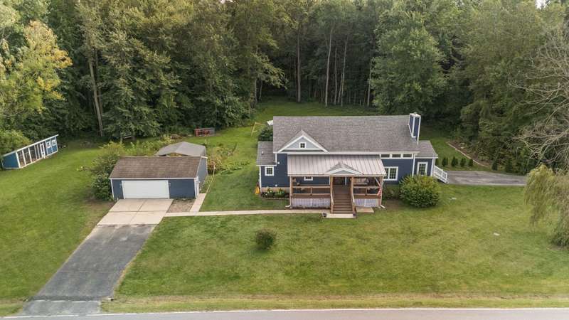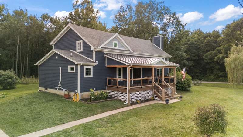 ESCAPE to this 3 bedroom/3 bath, 2 story home on 3.86 acres of peaceful countryside, offering the perfect blend of charm, comfort and functionality. Inside you will fine a gorgeous, updated kitchen featuring quartz countertops, subway tile backsplash, stainless appliances, a spacious island and a walk-in pantry, perfect for cooking and entertaining. The floor to ceiling, wood burning fireplace in the living room creates a cozy focal point. The main floor owners retreat with spa-like en suite with walk-in shower and whirlpool tub. The main floor office can easily double as a 4th bedroom (no closet). There are hardwood floors on most of the main level. The 3 seasons room has tile flooring and the laundry room is complete with washer and dryer. Upstairs you will find 2 bedrooms, updated bath, and a bonus room, perfect for an additional TV area, game room or quiet space. The partially finished basement has a rec room with new carpet (Sept 2025), wet bar and dining area, perfect space for entertaining, there is also plenty of storage space. Outside you will find a large covered porch with a composite deck, which faces north, perfect for shaded relaxation, a 2 car garage, plenty of garden space, and in a true country lifestyle, a chicken coop with happy, free range chickens, bringing fresh eggs! Award winning Duneland Schools, Great location, with easy access to the South Shore Train Station, Indiana Dunes and Recreational areas, and major highways and Indiana Toll Rd. This home is move-in ready, beautifully updated and full of charm, don't miss out on this one!