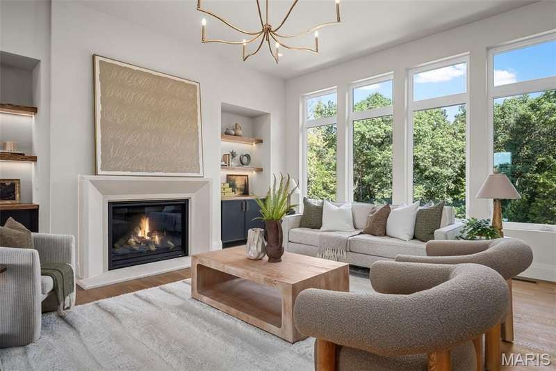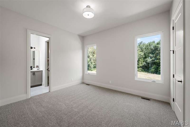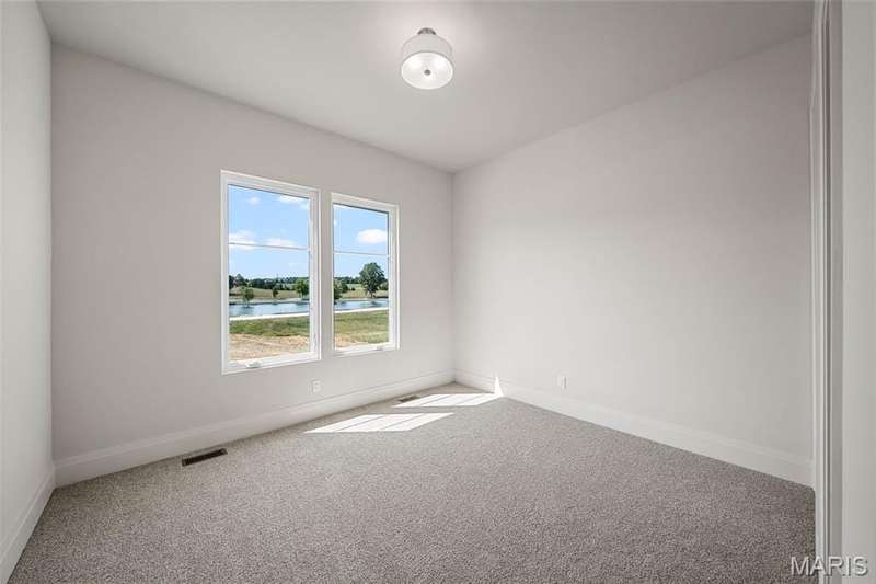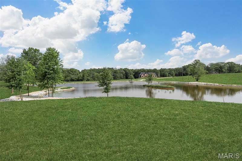 Forrest Homes presents the Aria model. An exceptional luxury home on over 5 acres with breathtaking wooded and lake views. From the moment you arrive, the upgraded landscape and timeless architecture set the tone for the exceptional craftsmanship and design found throughout. Inside, soaring 10 ceilings and 8 doors create an open, airy feel while large casement windows fill the home with natural light throughout. The innovative open floor plan features a gourmet kitchen which boasts a 48 Monogram gas range, luxury appliances and a walk-through pantry designed for function and style. The functional Laundry room offers plenty of storage with custom cabinets, folding table, slop sink and Dryaway racks. Custom millwork throughout that adds timeless elegance. A screened-in Composite deck offers the perfect spot to take in the scenery. The finished lower level includes a spacious bar and living area, ideal for entertaining. With 5 bedrooms, generous living spaces, and thoughtful design at every turn, this home combines sophistication with comfort on an unmatched private setting. Designed with comfort in mind, the home is equipped with 2 HVAC systems, 2 water heaters, and a fresh air intake system for efficiency. Irrigation system is included. Lake shown in photos is a stocked lake with a walking path around for the subdivision homeowners.
