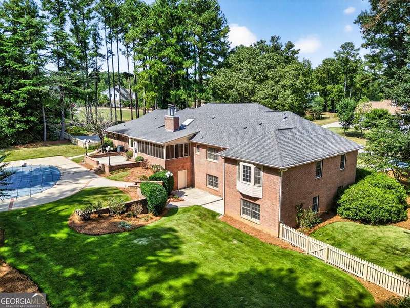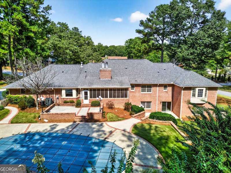 A true Estate in every sense, this all-brick, sprawling ranch offers elegance, scale, and comfort on a prominent corner lot with circular driveway. Designed for gracious living and unforgettable entertaining, this home blends timeless architecture with resort-style amenities. Four oversized bedrooms on main level, including serene owners suite. Grand formal living and dining room, ideal for hosting gatherings large or small. Inviting family room with vaulted ceilings, wood beams and brick fireplace. Bright functional kitchen with seamless flow to entertain. Oversized laundry room and mudroom with abundant storage. Relaxing screened in porch overlooking the estate grounds. The finished terrace level is the ultimate entertainment hub. Sprawling area with fireplace and bar, two additional bedrooms and private office. Rich wood-paneled finishes for timeless character. Generous unfinished areas for storage or customization, and easy walk-out to access the beautiful grounds. DID I MENTION THERE IS A WALK UP ATTIC (UNFINISHED!) Step outside to your backyard oasis built for entertaining: A beautiful tiled Gunite pool with spa, perfectly paired with an expansive patio for lounging and entertaining. A dedicated pool house with restroom, makes this retreat as functional as it is luxurious. This home has been well taken care of and THIS PROPERTY IS MORE THAN A HOME- IT'S AN ENTERTAINERS DREAM ESTATE. WITH SO MUCH IN THIS BEAUTY, THE BEST WAY TO APPRECIATE IS COME SEE IT FOR YOURSELF TODAY AND ADD YOUR PERSONAL TOUCH! THEY DONT BUILD THEM LIKE THIS ANYMORE!!!!!!!!