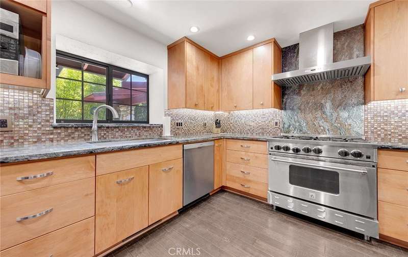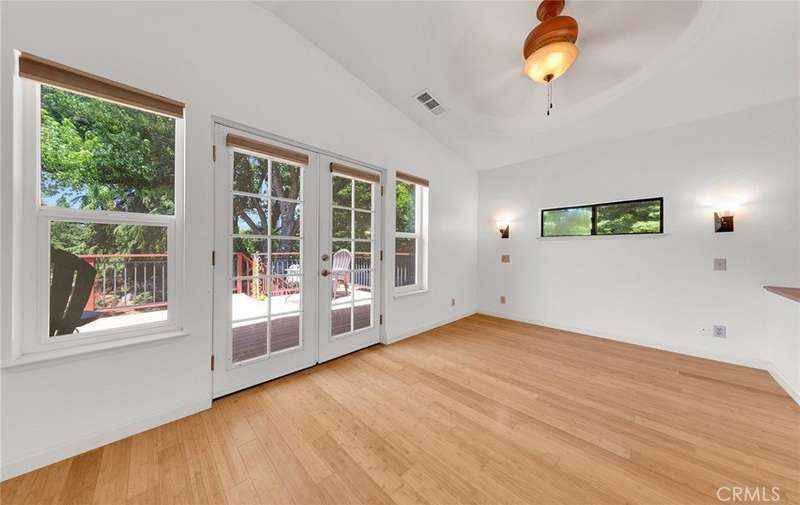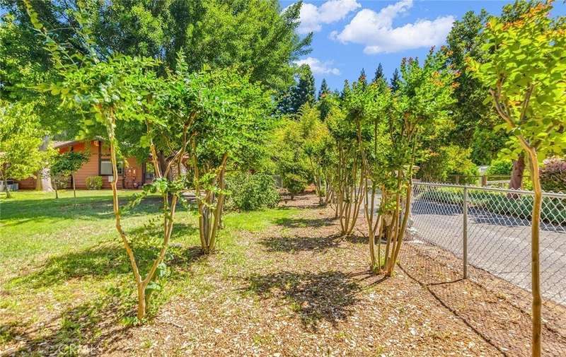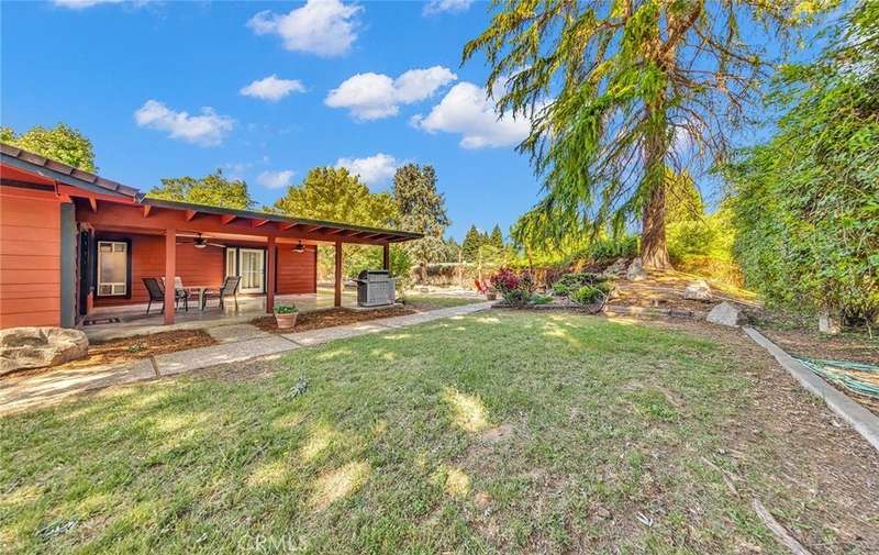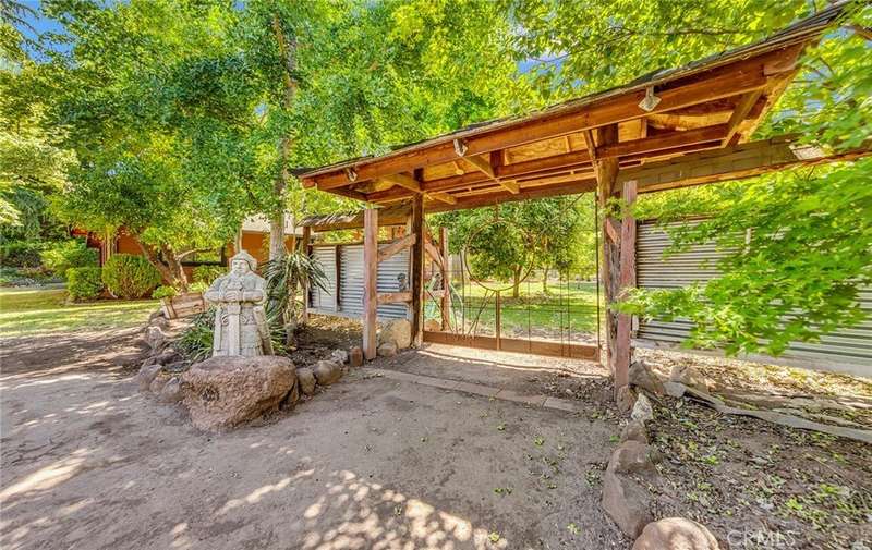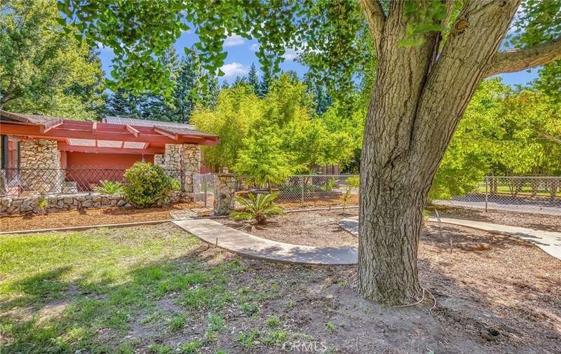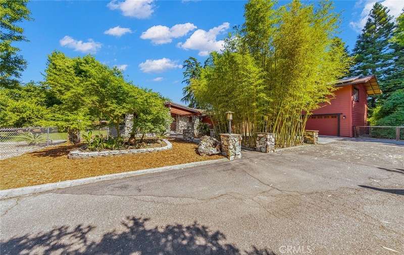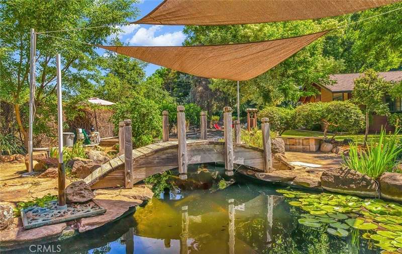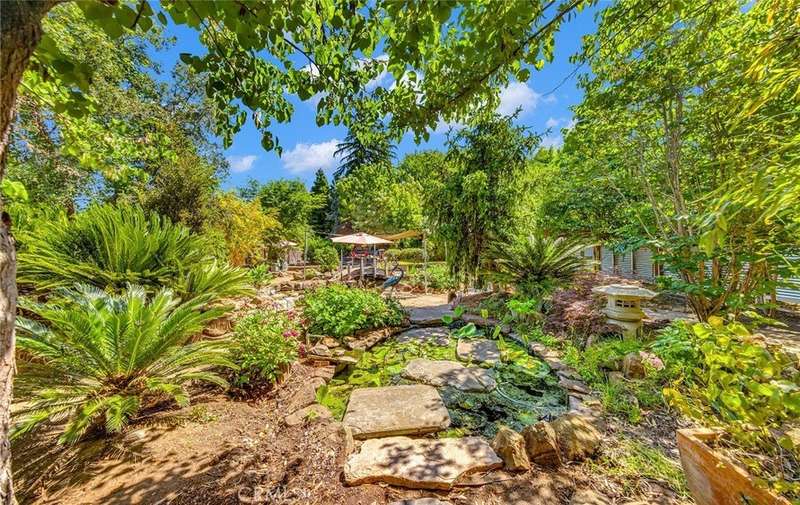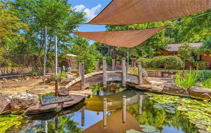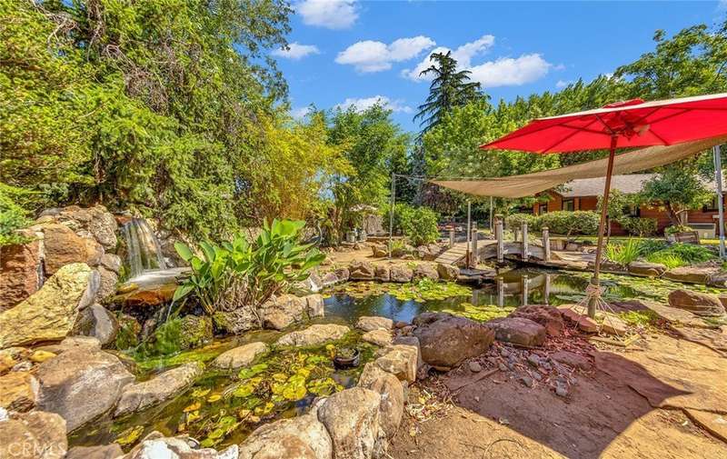 Incredible opportunity to own this quiet west side 3br/3ba home with a 1br/1ba apartment! Tucked away at the end of a peaceful cul-de-sac on just over an acre, this incredible and unique property offers a serene retreat surrounded by a family orchard with a variety of fruit trees and a breathtaking collection of Japanese maple trees. A custom-designed Japanese-style garden and koi pond—proudly featured on the Chico Pond Tour for years—add to the property’s tranquil charm. The main home features three spacious bedrooms, each with its own en-suite bathroom, and two distinct living spaces. Fresh interior paint brightens the home throughout. The front living room is filled with natural light from large windows, while the heart of the home—the family and dining area—boasts stunning open-beamed vaulted ceilings, wide 5/8” scraped maple flooring, and French doors that lead to a covered patio. The kitchen is beautifully designed with custom cabinetry, granite countertops, a central island with built-in wine rack and bookcase, a commercial-grade 6-burner Blue Star range, and a walk-in pantry. The luxurious primary suite offers coffered ceilings, a large 3-door walk-in closet, and a beautifully remodeled en-suite bath with dual sinks on a custom walnut countertop and a spa-like steam shower featuring multiple rain heads and a waterfall. Additional features in the main home include owned solar, a brand new roof, an oversized 2-car garage, a whole house water softener, a whole house fan, and two HVAC units for efficient climate control. Beyond the main house, the property includes an additional 2-car garage with an attached workshop and a full apartment above. The apartment offers its own HVAC unit, water heater, full kitchen, and generous living space—perfect for guests, extended family and has been an excellent source for rental income for the current owner. This truly special property blends nature, privacy, and great updates into one unforgettable home. Come experience it in person!
