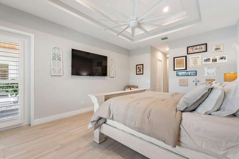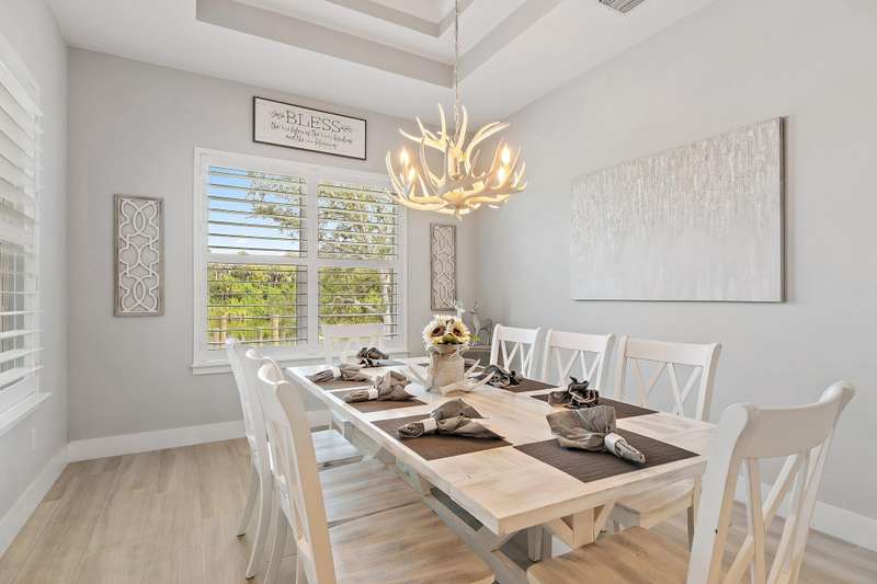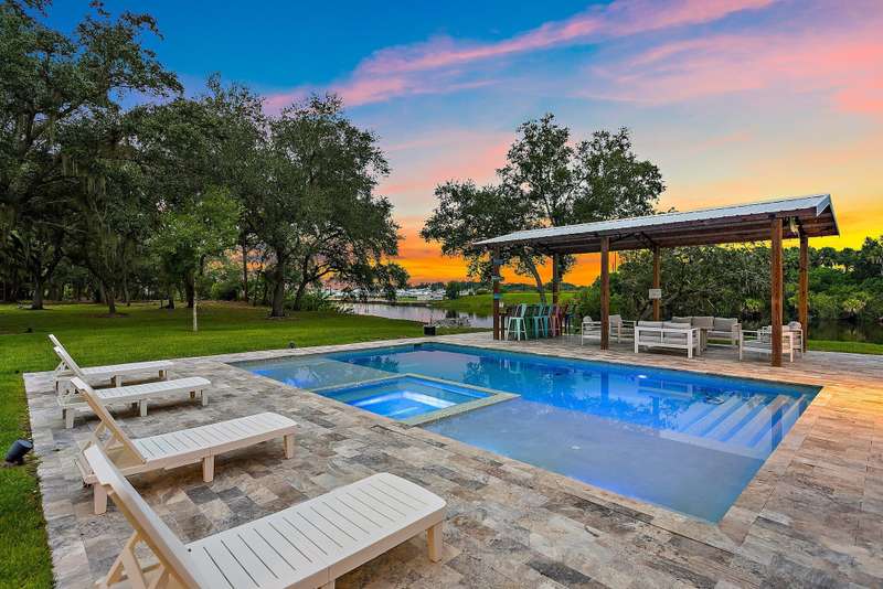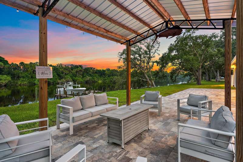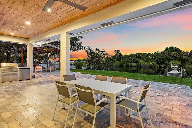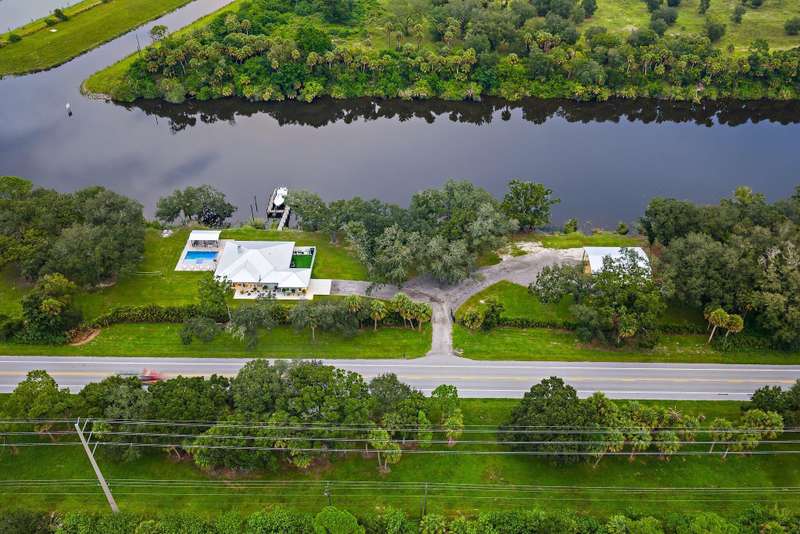 Welcome to your private waterfront retreat on the St. Lucie River. This newly constructed, CBS-built residence in Indiantown, Florida offers the perfect blend of luxury, serenity, and recreation. With 2,833 square feet under air (4,088 total), the home is thoughtfully designed with four bedrooms, three baths, and exquisite finishes including wood-look tile flooring, plantation shutters, impact windows and doors, a metal roof, and soaring 12-foot coffered ceilings beneath a 10-foot beam roof. The chef's kitchen is a showpiece, featuring a seating island, wet bar, and walk-in pantry, complemented by a formal dining room for entertaining. Retreat to the spacious master suite, where a glamorous spa-like bath and custom built-in closets provide everyday indulgence.