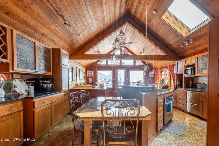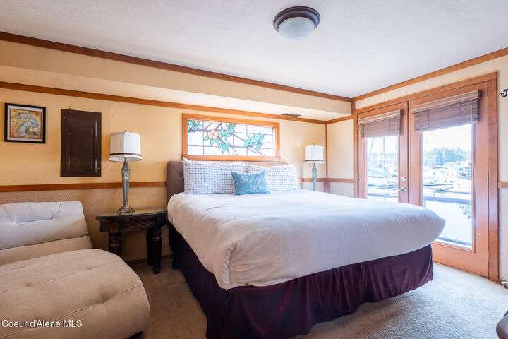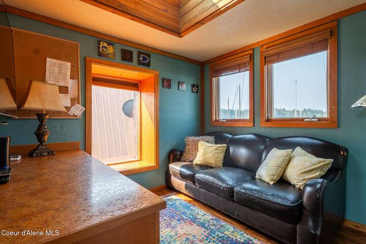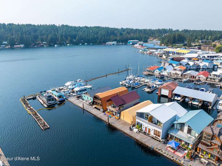 Discover the ultimate waterfront retreat on the tranquil waters of Lake Pend Oreille. This stunning two-story floating residence offers an intimate escape for up to four guests, with sweeping, unobstructed views of the lake and the lively Bitter End Marina. Every detail has been thoughtfully curated to combine lakeside charm with elevated comfort. Inside, two inviting bedrooms promise a restful night's sleep after a day of adventure. A private office space provides the perfect setting for those who need to balance work with leisure. The fully equipped gourmet kitchen is ideal for preparing exceptional meals, while the beautifully furnished living room invites you to unwind in style. Step outside to an expansive deck designed for entertaining and relaxation—complete with an alfresco dining area, Indulge in a rejuvenating sauna session as the sun sets over the water, and savor the perfect blend of serenity, comfort, and luxury that this exceptional floating home offers.
