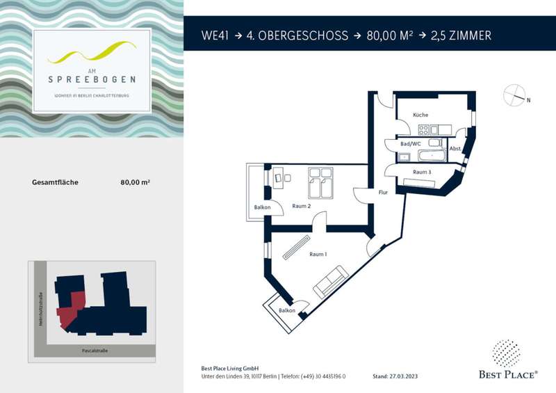 The 38 residential units "Am Spreebogen" are located in a classic, five-storey Berlin corner building. Most of the apartments consist of two rooms with living spaces of between approx. 50 m² and 80 m², making them ideal for singles and couples. There are also a number of 3- to 4-room apartments ranging in size from 80 m² to 135 m²: Larger families will find their dream home here. There are two rented commercial units on the first floor. The rented 2.5-room apartment is located on the 4th floor of an old building and has two balconies facing south and west. Two large, bright living rooms, a small bedroom or study, a spacious eat-in kitchen, bathroom and storage room are accommodated on 80 m². Only suitable for investors!