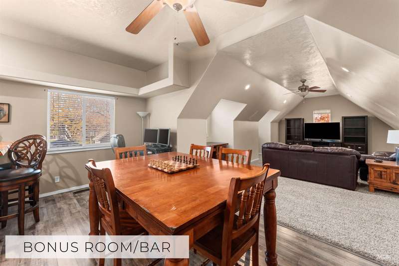 Incredible multigenerational living on a rare half-acre in the coveted Canonero West subdivision of Boise. This one-of-a-kind property offers the perfect blend of space, versatility, and comfort. A true standout feature is the expansive 6-car garage and shop with a complete studio apartment and separate entrance—ideal for extended family, guests, or rental income. Inside, enjoy over 3,400 square feet of thoughtfully designed living space. The main level includes a private office, formal dining room, and an inviting family area that flows seamlessly into the kitchen and breakfast nook. The owner’s suite is a relaxing retreat with direct access to a covered balcony overlooking the peaceful backyard. Upstairs, the oversized bonus room with a built-in bar creates the perfect entertainment space for gatherings or game nights. Outdoors, the fully fenced yard features a built-in fire pit, horseshoe area, and a large covered patio—perfect for enjoying Idaho evenings. Located near parks, shopping, and freeway access, this exceptional home truly has it all.