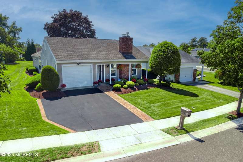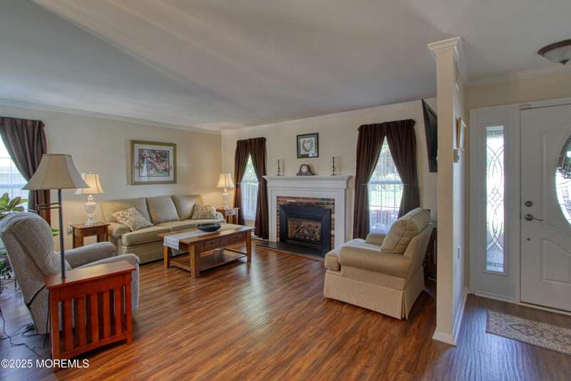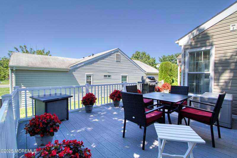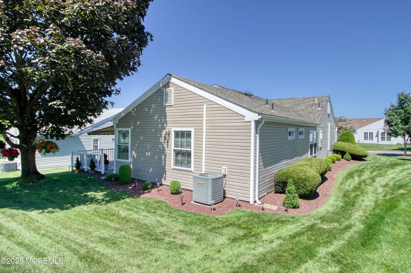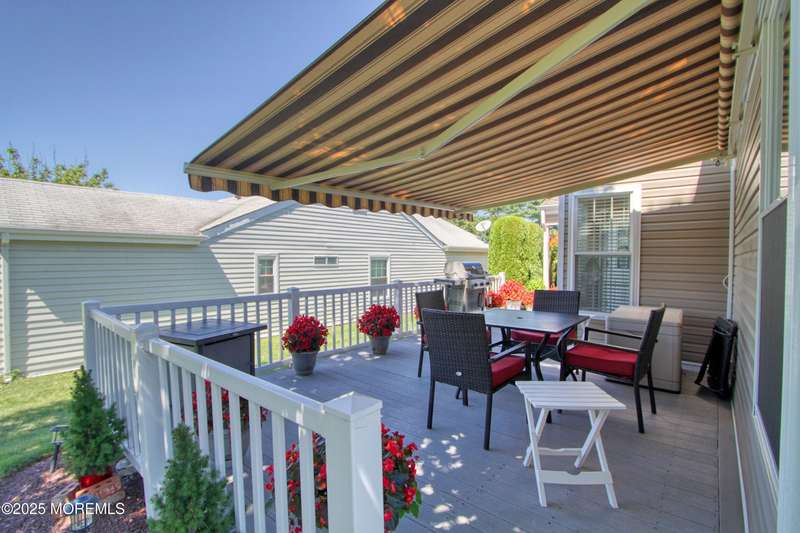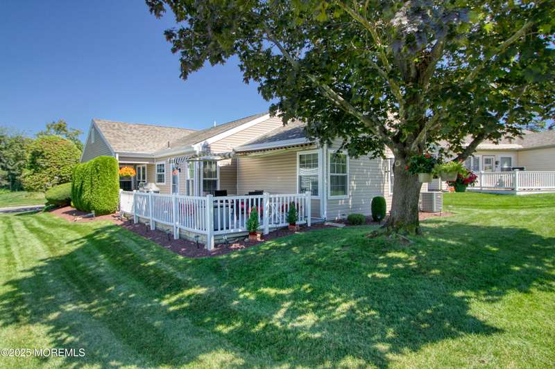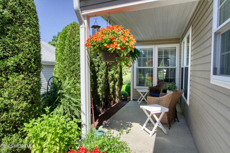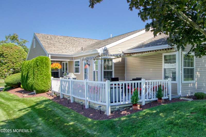 Beautiful Westport model home with gas heat. 2 roomy bedrooms, main bedroom with full bath and walk in closet and French doors. Waterproof Vinyl wide plank flooring. Crown Molding through out the house and chair railings. 2nd bedroom with ceiling fan and a desk nook along side of the closet. Whole house has recently painted, driveway repaved 2025 with Pavers on both sides going to the front open porch. Generous size living room with gas fireplace. Eat-in kitchen all remodeled and gorgeous with granite counter tops with Stone Backsplash. side door goes out to the patio to the right and to your left a Trex deck with a Sunsetter w/remote. Professional Landscaping, Double wide driveway. 30 year roof replaced 2014. Motion detectors back door and garage This house is turn key! Move right in...