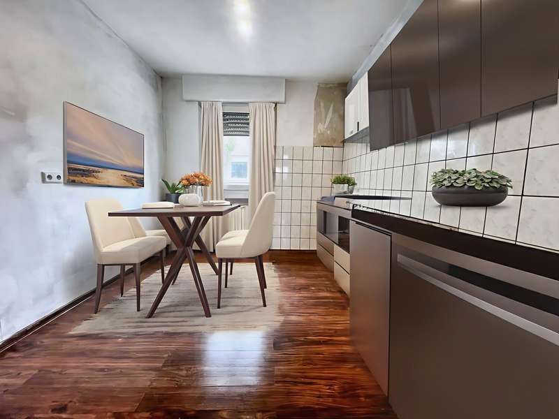In Menden-Platte Heide we are selling a 2-room apartment in need of renovation in a well-kept 5-family house. The apartment is located on the 1st floor - an elevator is not available. The apartment impresses with its intelligent room layout. Even the entrance area is generously proportioned, providing enough space for shoe cupboards and/or a wardrobe. The bathroom with a large daylight window is tiled in timeless white and has a bathtub. The adjoining bedroom has enough space for a spacious closet. Manual shutters ensure darkening for a restful night's sleep. The cozy living room can be individually designed. A door leads from here to the balcony - ideal for creating a little green retreat! A passageway from the living room gives you access to a small dining room. Alternatively, a kitchenette can also be placed here to create an open-plan living concept. The apartment also has a further room. Whether you create a large kitchen here (as before) or use this room for other purposes - e.g. as a children's room, dressing room or hobby room - is of course entirely up to your creativity and individual needs. A laundry room is available to all residents in the basement. A separate cellar room is included in the purchase price. The parking space directly in front of the house is priced at an additional €4,000. The apartment building has only recently been converted into condominiums, therefore no house money / reserve information is available yet. The apartment is vacant and can be viewed at short notice. Please contact us for your personal on-site appointment - we will be happy to help! Your team from VON POLL Immobilien Iserlohn & Lüdenscheid