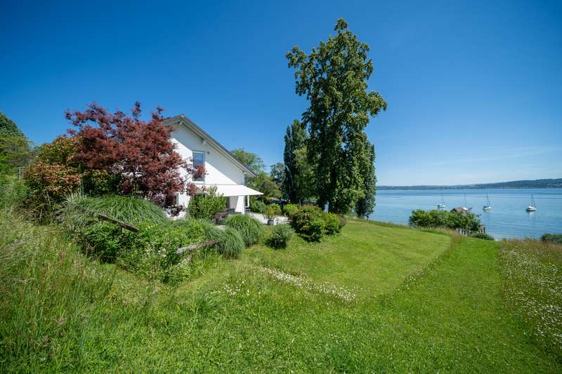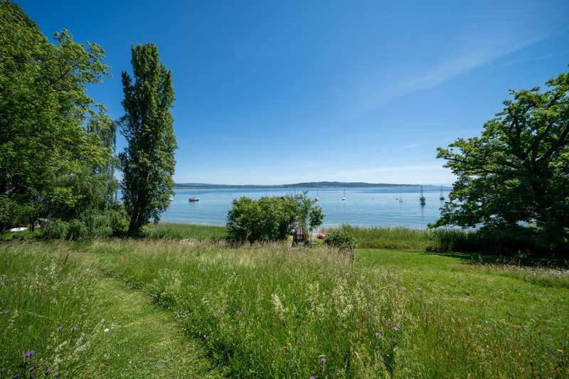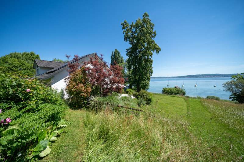 Immerse yourself in a world by the water - quiet, romantic and full of possibilities. Welcome to one of the most magical places on Lake Constance: this exceptional lakeside plot of approx. 2,706 m² is located in Litzelstetten, nestled between water and nature - a retreat full of history, charm and a unique quality of life. The plot is developed with a modern detached house and is therefore an idyllic retreat for a family with a fantastic view of the lake - surrounded by mature trees. Built in 2014, the detached house with approx. 178.87 m² of living space combines modern interior design with timeless elegance. High-quality materials and a tasteful design characterize the living area, which impresses with clear lines and a warm atmosphere. Large window fronts allow plenty of light into the interior and offer a beautiful view of the extensive grounds and the lake beyond. The outdoor facilities include a generously landscaped garden, which offers plenty of space for outdoor leisure activities and relaxing hours in a natural setting. Established trees frame the property on the lake side and create intimacy with the neighbors up the slope. A variety of design options leave room for individual ideas and wishes. The property also has direct, private access to the lake, offering you maximum exclusivity and freedom. Enjoy morning swims in the crystal-clear water, relaxing hours on the shore or romantic sunrises with a view over Lake Constance - right on your doorstep. A lovingly preserved historic bathhouse gives the property a special soul. Here, nostalgia meets naturalness - a retreat that creates memories. Whether as a summer studio, resting place or place for special moments: This gem tells stories and invites you to dream. This property is ideal for a family who want to live generously in idyllic surroundings. Not only people live here - but also the moment. Contact us for more information or to arrange a viewing to see the features and possibilities of this exceptional property for yourself. Please understand that we will only consider inquiries with full contact details and a brief proof of creditworthiness or proof of financing in order to ensure a trustworthy and secure process for all parties involved.