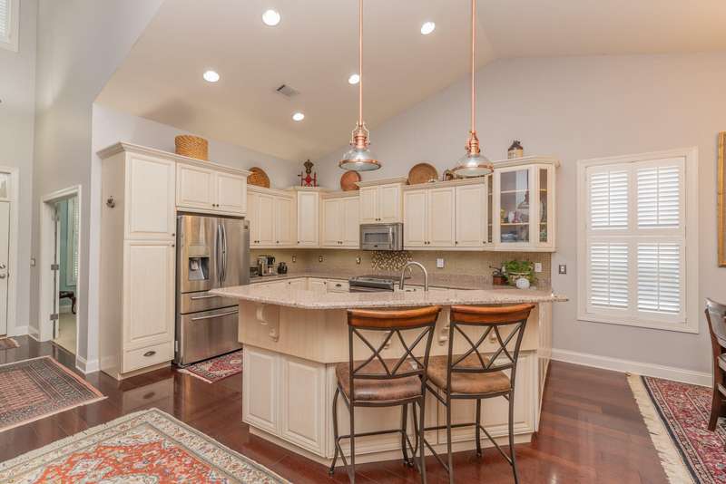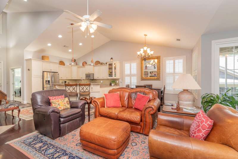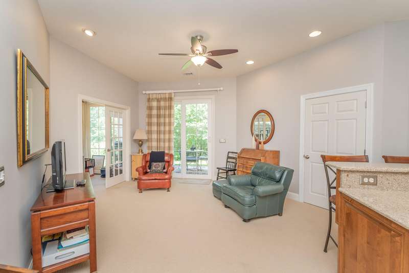 Proudly offering this lovely townhouse with easy living at its finest. Entering a private front porch and stepping into an open floor plan with office, chef's kitchen all appliances remaining, Silestone countertops plus great room/dining and primary suite. Enjoy the screened porch with nature preserve as a backdrop. Lower level presents 2 bedrooms 2 baths and a large entertainment room w/bar. A lower level office adjoins for a peaceful place to work. Tankless HWH, amazing storage will be an extra bonus. This home has privacy, close to both guarded gates and walking paths and either of the 2 clubs to enjoy social activities.