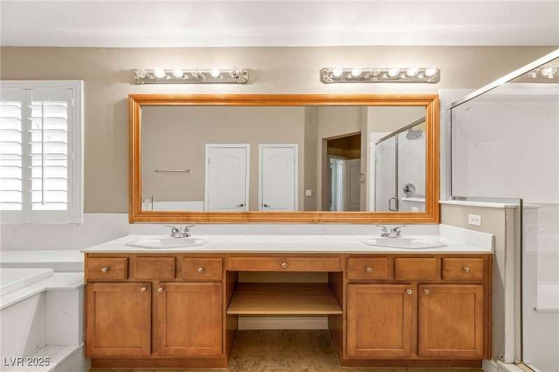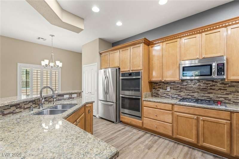 Welcome to this beautiful and rare single story home boasting a unique 600+ Sq. Ft. upstairs loft, and located in a quiet and exclusive gated community, offering both elegance and peace of mind. From the moment you arrive, you’ll notice the great curb appeal and inviting presence of this residence. Inside, the open floor plan is perfect for both everyday living and entertaining. The chef’s kitchen features stainless steel appliances, double ovens, and ample counter space, while shutters throughout add timeless sophistication. The primary suite impresses with vaulted ceilings, creating a relaxing retreat. A spacious 3-car garage provides convenience and storage. Outdoors, the backyard is a true oasis with lush trees, vibrant flowers, and real grass, making it ideal for gatherings or quiet evenings at home.