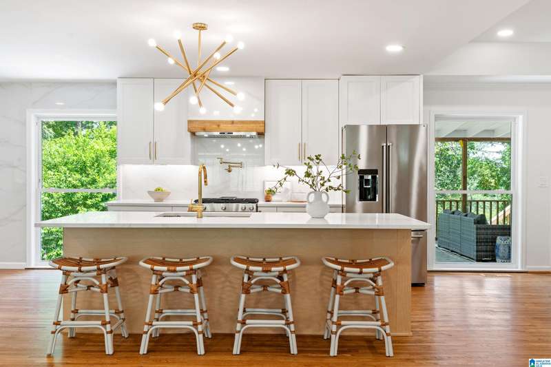 STUNNING 4 BR/ 3.5 BA brick home conveniently located near Vestavia Country Club & East Elementary.+/-4,000 Sqft of living!! Situated on a private lot w/ over half an acre to explore. Step inside to discover an open concept living space filled with natural light, showcasing high end finishes & stylish details. The gourmet kitchen is a chef's delight, equipped with top of the line appliances, pot filler, gorgeous hardware, custom cabinetry, & a lovely butler's pantry offering a second dishwasher with ample storage. A dream setup! Venture onto the oversized covered porch right off the Den for fabulous entertainment & relaxation, all while overlooking the large patio area & backyard oasis. Retreat to the master suite w/large windows that exhibit mountain views & a new private porch. Gorgeous en suite w/walk-in-closet! Add'l living space in the basement that is similarly finished to the upstairs w/4th BR, Family Den, Full Bath & Bonus walk in storage. Move in Ready+prime location!