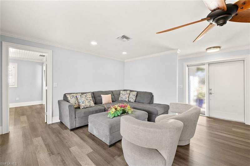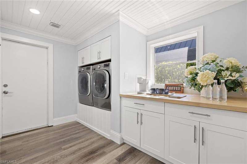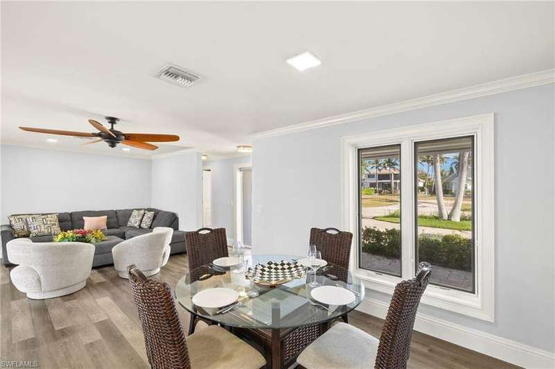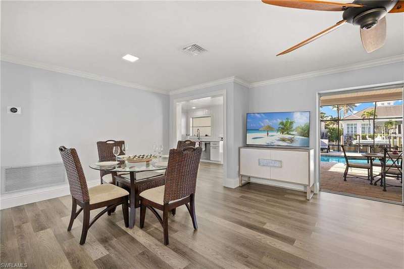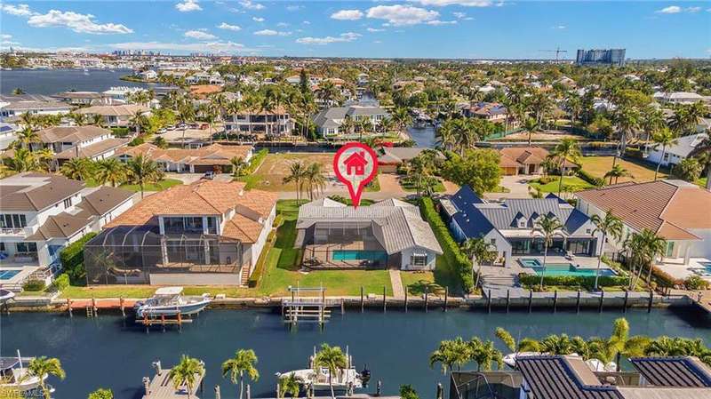 Discover your perfect oasis in this prime Marlin Drive location, just six lots from the beautiful Naples Bay. With a sun-drenched pool and highly coveted south-facing exposure, this property offers a luxurious and relaxing lifestyle. 15,000 on lift! Situated on a low-traffic street with easy access to Naples Bay, this home has been thoroughly updated in 2021 with a host of modern amenities. Upgrades include a new electrical panel, new AC unit, all new electric fixtures and switch plates, a fully renovated kitchen with stylish quartz countertops, induction flat surface stove top, new double oven and high-end appliances, including a large washer and dryer. Enjoy the convenience of new plumbing, a new hot water heater, fresh paint, crown molding, and custom wall woodwork including bead board ceilings. The property boasts a striking paver circular driveway and spacious outdoor living area with paver pool deck. The heated pool was resurfaced, with coping/edging and vibrant colored lighting. Boaters will love the quick, no-bridge access to the Gulf of Mexico, and the dock features new pilings, and new lift as of 2021. The interior of the property features modern design and decor throughout with beautiful white quartz countertops, modern white cabinetry, stainless appliances, and an open floor from the interior living to the outdoor living space Enjoy partial Bay views and marvel at sunsets or fireworks from Naples Pier during the Fourth of July. This is one of the last opportunities on Marlin Drive to own a south-facing lot with potential to build your dream home in the future. Ideally located just minutes from downtown 5th Avenue South and 3rd Street South's fine dining, world-class shopping, entertainment, and white sand beaches, this home offers the best of Naples living. Don't miss this chance to own a slice of paradise!