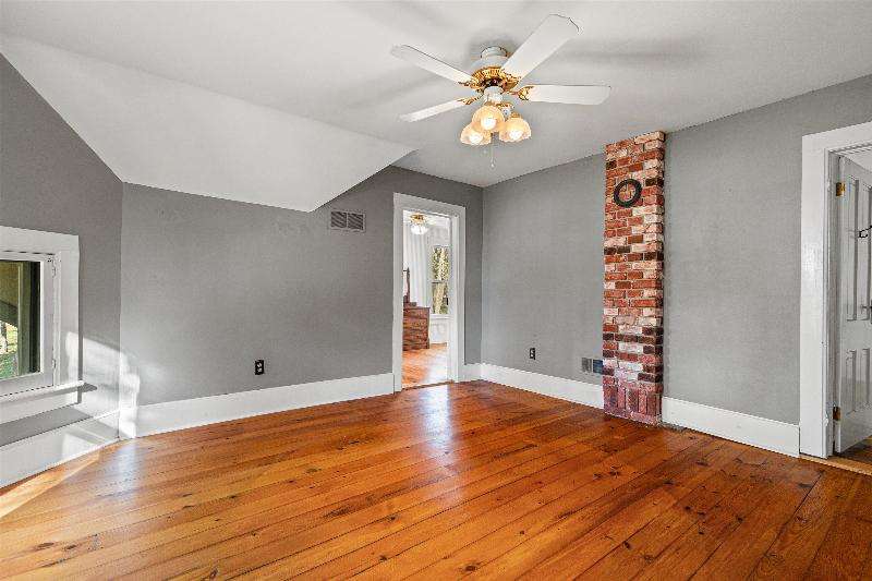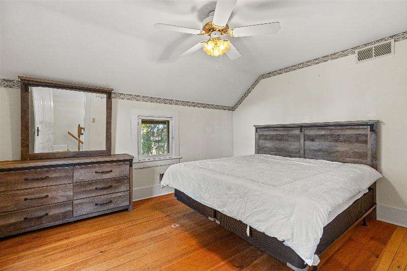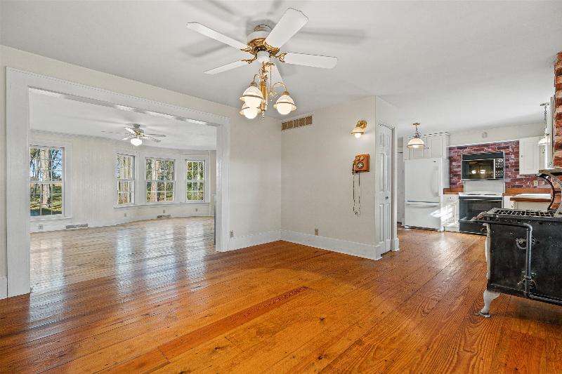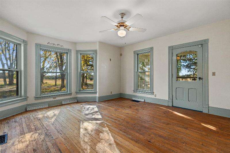 Welcome home to this inviting 4-bedroom farmhouse nestled on 2 beautiful acres. Full of warmth, character, and country charm, this real gem and rare find offers wood floors throughout, a spacious kitchen perfect for gathering, and a large, sun-filled family room with a cozy fireplace. The main-level primary bedroom and bath add comfort and convenience, while the upstairs bedrooms provide plenty of room for family or guests. Enjoy peaceful mornings on the porch, stunning country views, and plenty of space to garden, roam, or raise a few chickens! With a 2-car attached garage, a handy outbuilding, and a large garden shed/chicken coop, this spacious home is perfect for anyone dreaming of country living at its best--a place where memories are made and simple pleasures shine.
