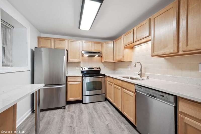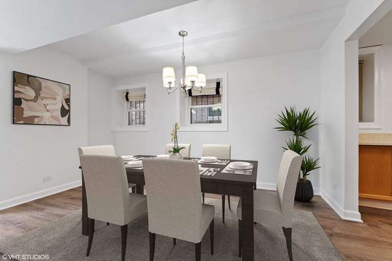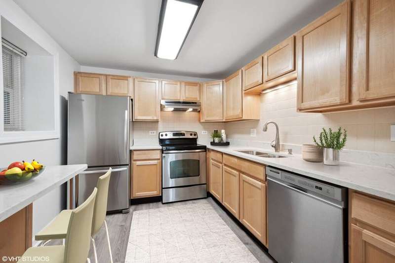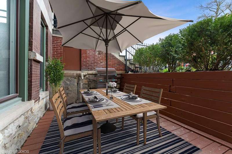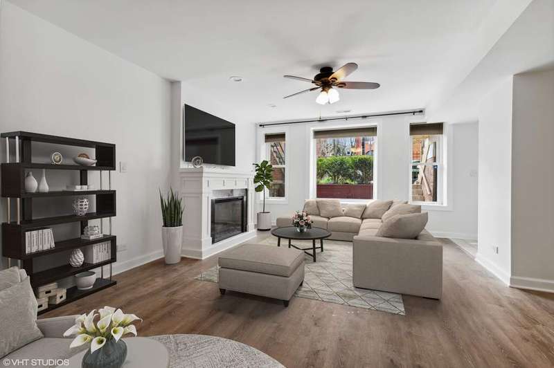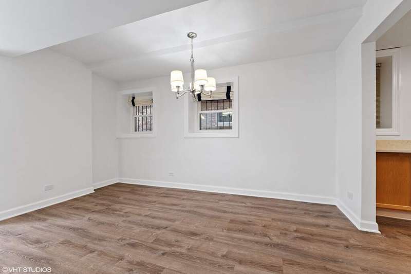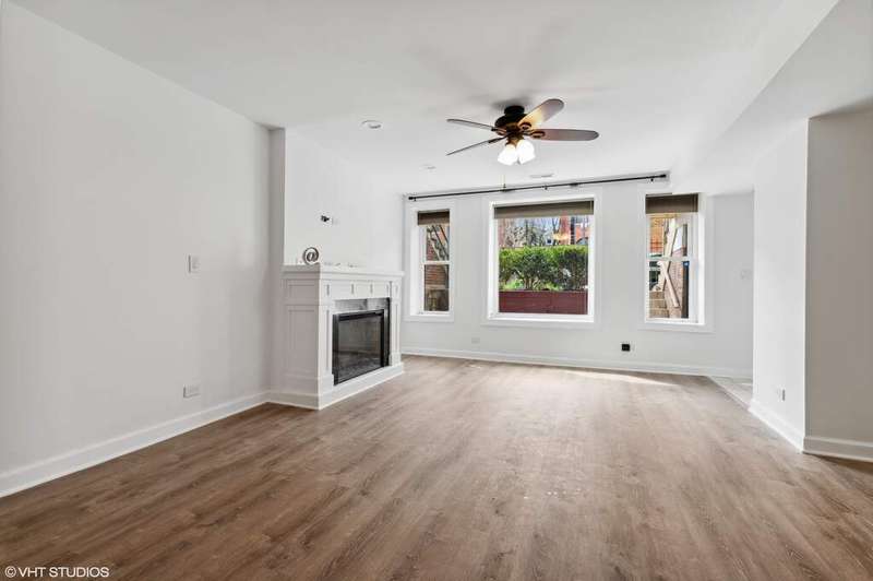 English garden unit that feels like a 1st floor located in central Lincoln Park. 2 bed 2 bath upgraded condo with luxury vinyl tile floors throughout, gas fireplace, huge living room with bright windows, separate dining room, sizable kitchen with quartz countertops, SS appliances and eat-in bar. Down the hallway there are 2 great sized rooms each with their own bathroom, huge front patio/deck, central heat & air, W/D in unit and parking included in rent. Walk to Fullerton redline, DePaul and more.