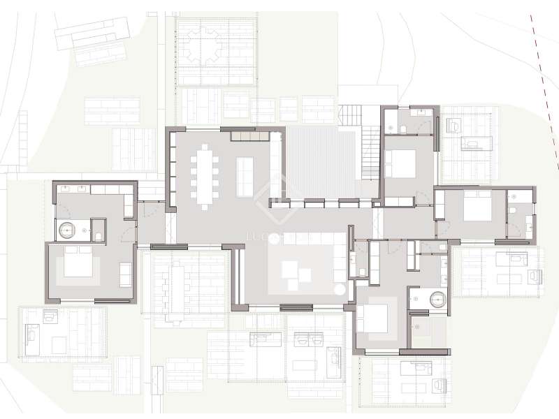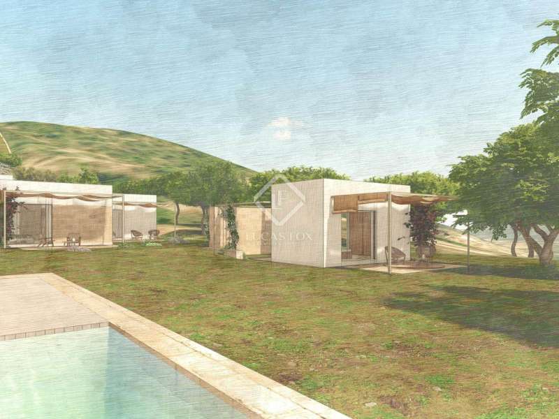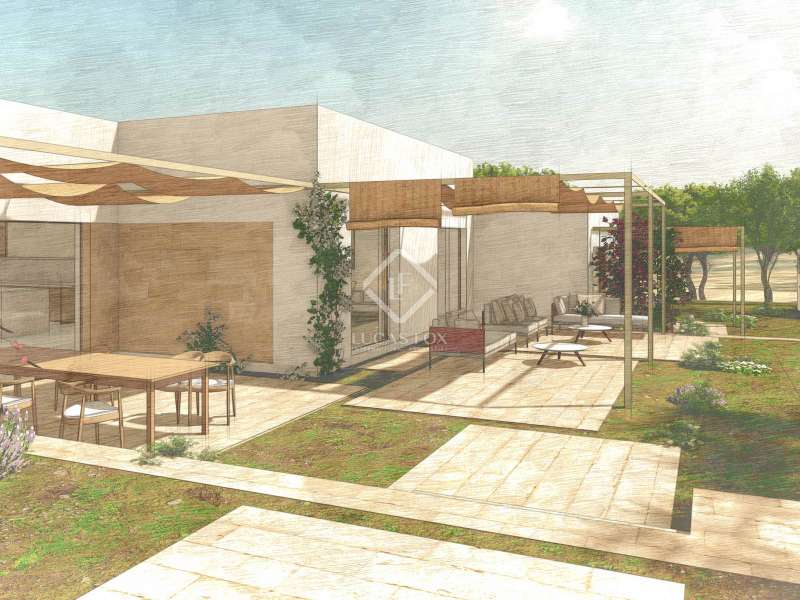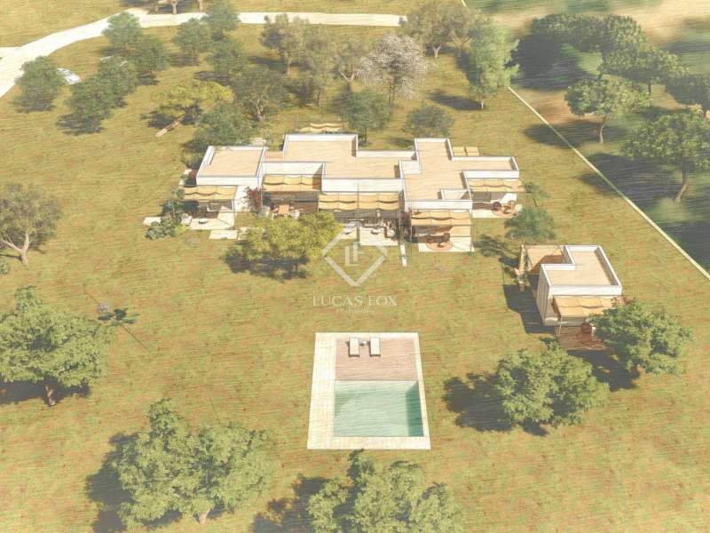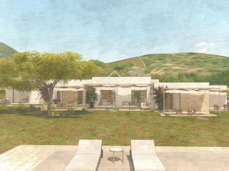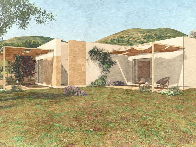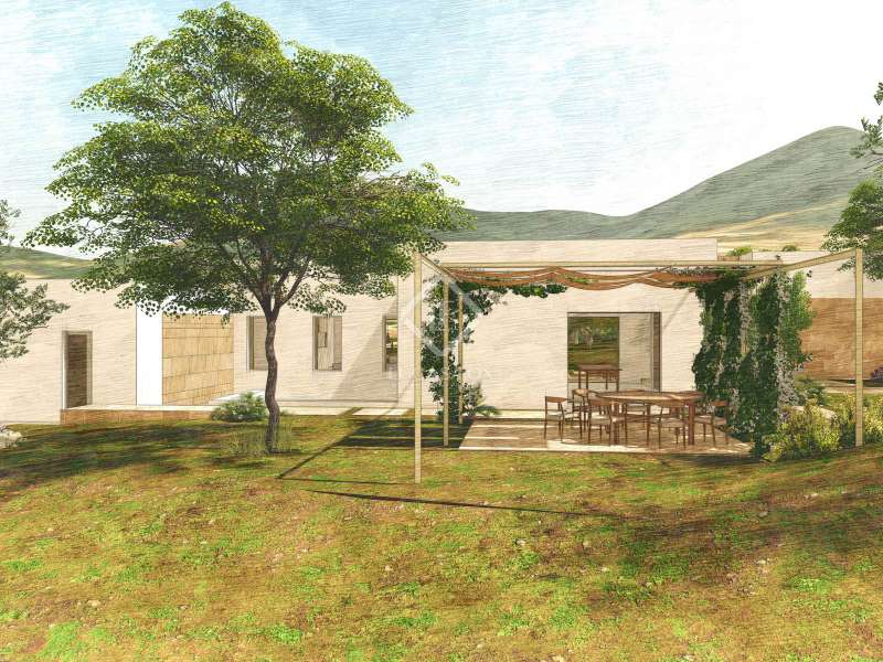 We are proud to present this beautiful project designed by renowned architect Jaime Romano's studio, consisting of a 5-bedroom villa to be built on a secluded 3-hectare rural plot located just 2 minutes away from the charming village of Sant Josep and a few minutes drive to the island's best beaches. The project consists of a main house with a Boho-chic design, 4 en-suite bedrooms, a large living space, open kitchen and a swimming pool. Each bedroom and living area opens up to terraces and chill-out spaces. A guest house with an additional en-suite double bedroom completes the main home. Perfect as a family home or as a second residence, the S'Arenest project finds itself in a peaceful leafy setting, south oriented, full of light all day long and with spectacular view to the famous Sa Talaia mountain. The size of the plot ensures total privacy, and yet it is well connected and accessed by an asphalt road. This project has received the green light from the Consell and will now enter to the Townhall for review and approval, which is expected in a period of approximately 12 months. The buyer still has a chance to modify some aspects of the project at its discretion before final approval from the town hall, and will add its personal touch through interior design and finishes. Please contact us for further details.