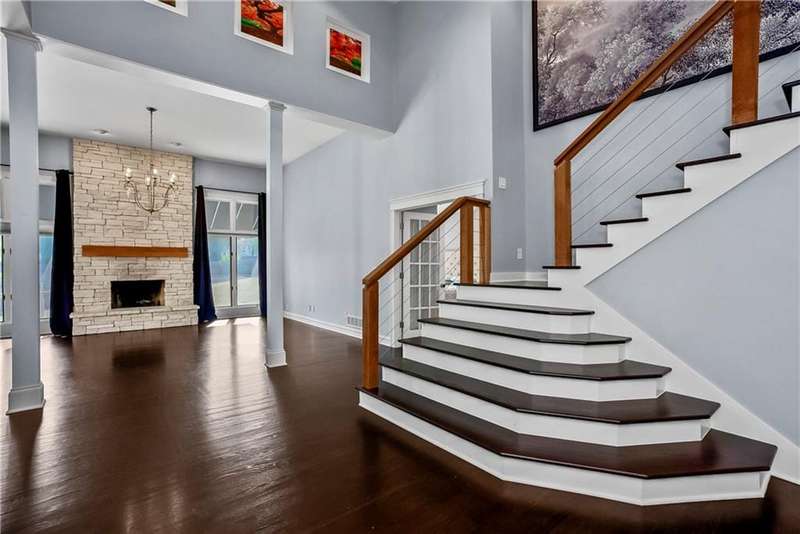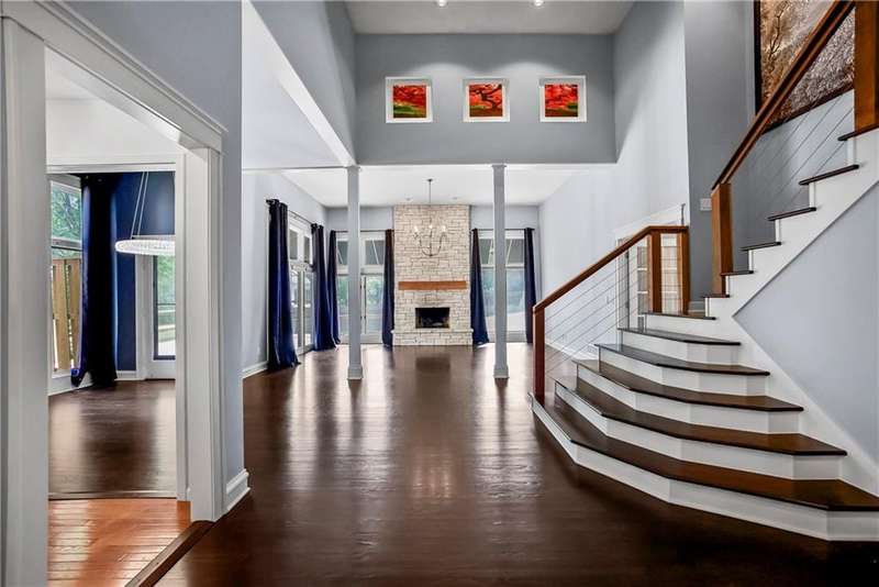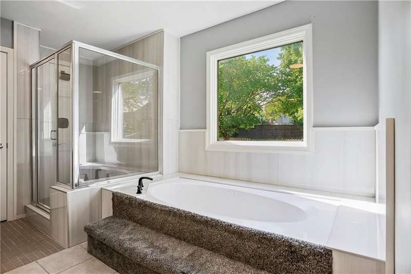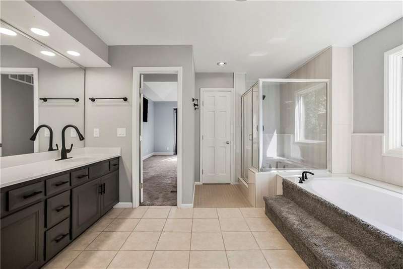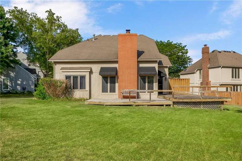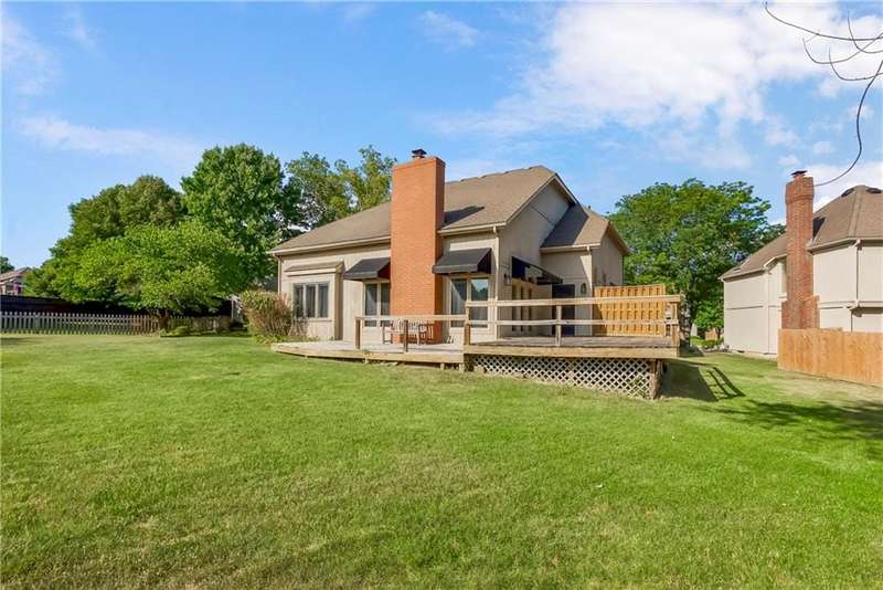 Welcome to this charming 1.5-story home, located on a quaint cul-de-sac on just shy of 1/2 acre, with interior updates throughout, in the heart of Overland Park! With over 2,800 square feet, 4 bedrooms, and 3.1 bathrooms, this home offers the perfect blend of functionality, comfort, and styleall in a prime location near Town Center shopping and Park Place dining. Step through the grand entryway and into a light-filled main level where rich hardwood floors and soaring ceilings create a warm, elegant atmosphere. The formal living room is anchored by a stunning floor-to-ceiling stone fireplace, access to the deck and opens seamlessly to the formal dining room. The updated kitchen features ample counter space, stainless steel appliances including the refrigerator, and an eat-in breakfast areaperfect for casual mornings or entertaining. The main-level primary suite is a true retreat with plush carpet, pendant accent lighting, an inset ceiling with a ceiling fan, and an en-suite bath complete with tile floors, double vanity, walk-in shower, jetted tub, and a spacious walk-in closet. A convenient half bath and laundry room round out the main level. Upstairs, two generously sized bedrooms share a connecting bathroom, while the fourth bedroom features its own en-suite. The unfinished lower level offers endless possibilities such as a workshop, flex space or is the perfect opportunity to finish. Access your wrap-around deck from the formal dining room or the living room. Outdoor canopies provide shade over the living room windows. An oversized flat backyard has potential for you to create your own backyard oasis with room to spare. Additional upgrades include a Nest thermostat, Bluetooth speakers (located in the ceiling lights), additional insulation, front loading washer and dryer that stay, and newer carpet throughout. Location, layout, and lifestyle ready for your personal customization!
