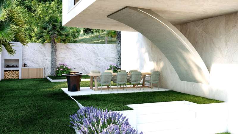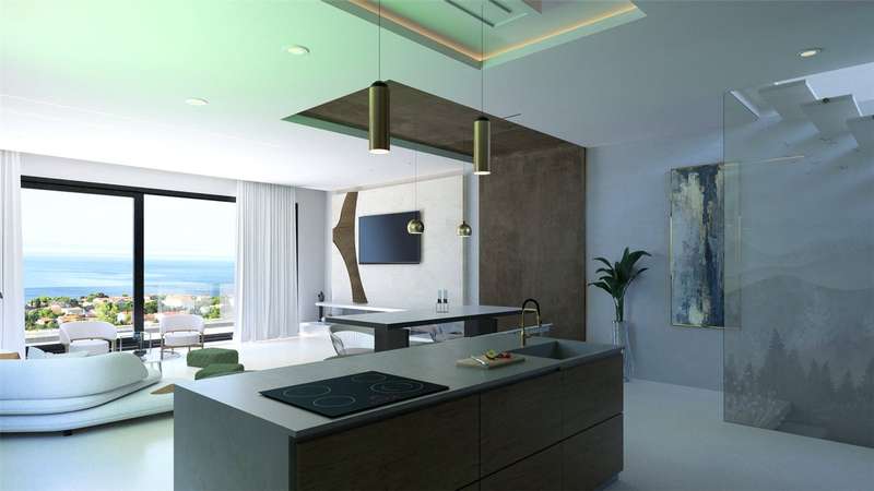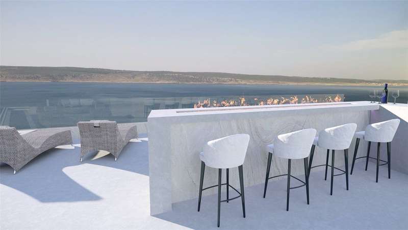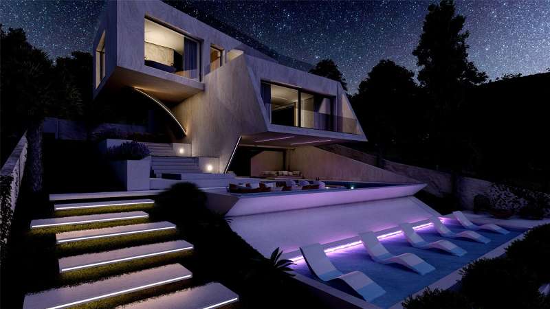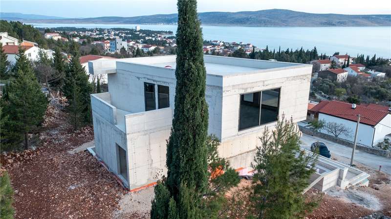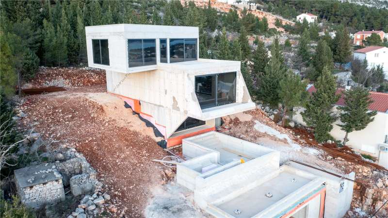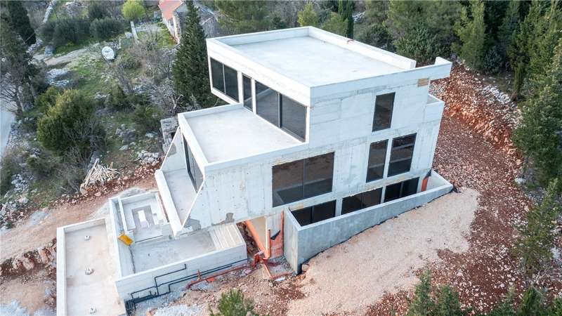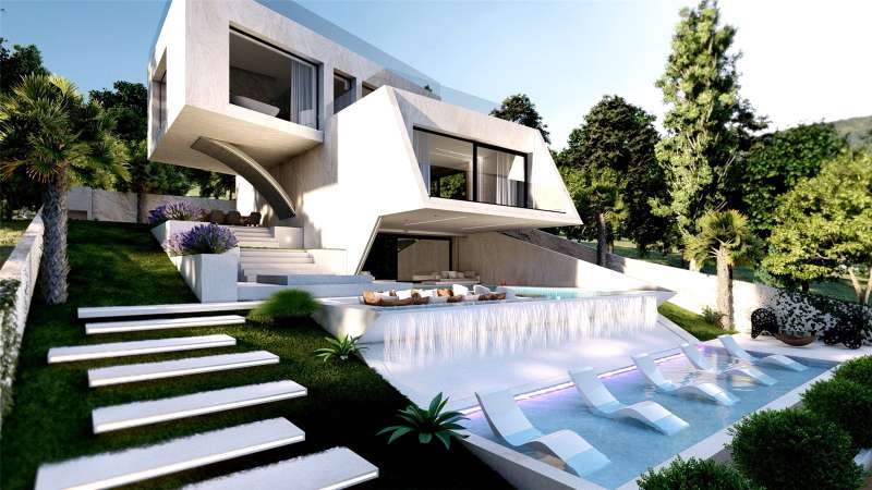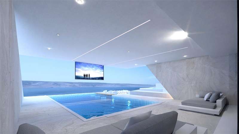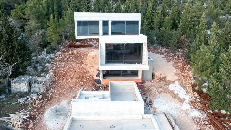 In the picturesque town of Starigrad, just 400 meters from the sea and 100 meters from the Paklenica National Park, a luxurious villa is under construction. Designed by a renowned Croatian architect, this villa offers unforgettable panoramic views of the crystal-clear Adriatic Sea and the impressive Velebit mountain range. Spacious and Luxurious Interiors The villa extends over two floors and a basement, covering a total area of 315 m². The first floor comprises two master bedrooms, each over 30 m², equipped with luxurious bathrooms, walk-in closets, and private terraces. The ground floor includes an additional bedroom, a modern bathroom, a spacious living room with panoramic views and balcony access, and a fully equipped kitchen with dining area. The basement is designed as a relaxation and entertainment area featuring a wellness zone, sauna, fitness room, gaming room which can also serve as an extra bedroom, private cinema, and an attractive lounge area carved into the rock. Exclusive Outdoor Amenities Special attention has been given to the villa’s exterior, which includes an infinity pool of 63 m² with a waterfall effect inspired by the Paklenica waterfalls. The spacious terrace features an open-air cinema, hydromassage pool, and two lounge areas equipped with a fireplace and grill, ideal for relaxation and entertainment throughout the year. (NB: some images are computer generated)