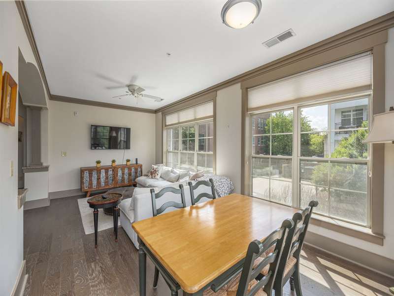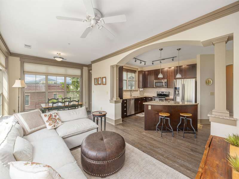 Welcome to this beautiful 2-bedroom, 2-bath corner-unit condo in the heart of Biltmore Park, Asheville'spremier live/work/play community. This light-filled home features an open floor plan with many updatedfinishes, blending comfort and style. Enjoy your private balcony?perfect for morning coffee or eveningrelaxation. Two dedicated parking spaces and a storage unit convey. Adjacent to Biltmore Park Town Square,this condo offers the ideal mix of convenience and lifestyle in one of Asheville's most sought-afterneighborhoods.