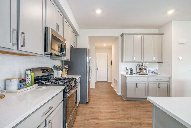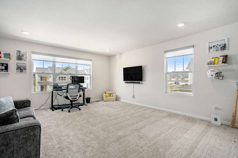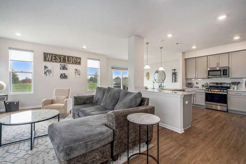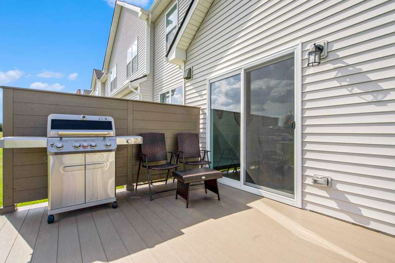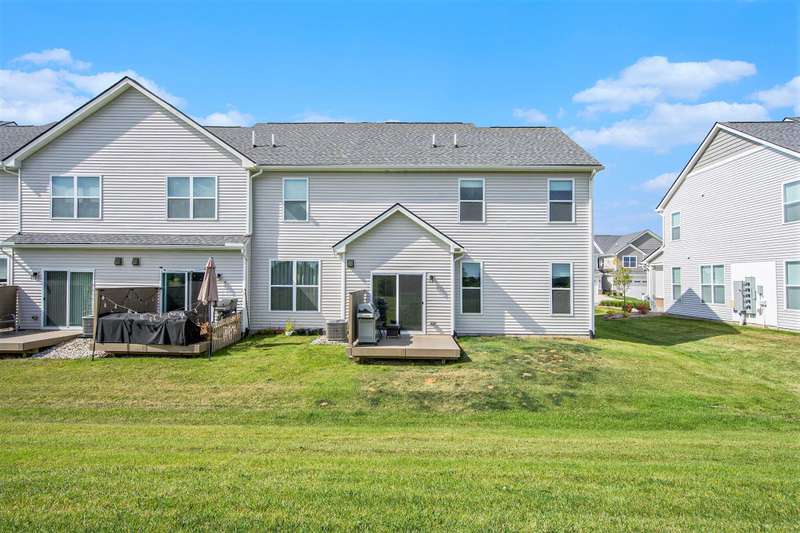 New Townhome in Andelina Farms, Saline. End unit built in 2024 with upgraded builder package. The townhome features an open floor plan with 9 ft ceilings on the main floor, creating a spacious and airy feel. The kitchen is highly functional, equipped with quartz countertops, a tile backsplash, a snack bar, and abundant counter space -- perfect for cooking and entertaining. The dining area is generously sized and opens to a patio via sliding doors. The living area has plenty of windows, filling the space with natural light. Upstairs, you'll find a large primary suite with a modern bathroom and a spacious walk-in closet. The second bedroom is also a good size with a large closet. An oversized loft area offers versatile space that can easily be converted into a third bedroom. The 2-car garage features polyurethane floors for easy cleanup. Additional amenities include a low HOA fee of $150/month, covering lawn maintenance and snow removal. Pets are welcome in this community. Smart washer & dryer included.
