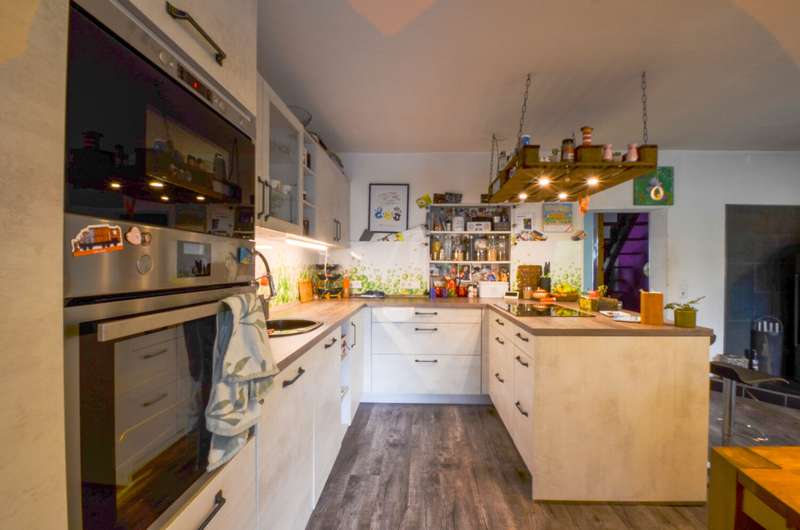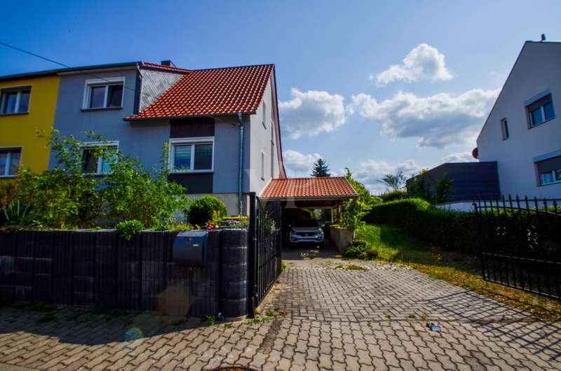 This well-kept semi-detached house in 99326 Stadtilm OT Dienstedt offers plenty of space for living, relaxing and leisure on a generous plot of 1,054 m². Built in 1986, the solid house impresses with its solid construction, a living space of approx. 112 m² and a practical full basement, which offers additional storage space and a variety of uses. Features & highlights: - Solid construction (built in 1986) - 112 m² living space spread over 5 rooms & 2 bathrooms - Large plot with 1,054 m² - plenty of space for children, garden lovers & animal lovers - Full basement - additional storage space, hobby or workshop area - Large carport for 2 vehicles - convenient and weather-protected parking - Pool in the garden for relaxing summer days - Gas heating from 1992 - new, unused heating already available (just needs to be installed) - Plastic windows with double insulating glazing - Roof insulation available - Electrics partially renewed incl. new fuse box Renovations & modernizations: - Bathroom on the ground floor completely renovated in 2018 incl. modern underfloor heating - Kitchen newly installed in 2018 with high-quality appliances (some Bosch) and induction hob - Large, covered terrace with new paving stones - perfect for sociable evenings - House was successively renovated and modernized until 2020 Location The property is located in a quiet, natural setting in Stadtilm OT Dienstedt. Here you can enjoy a rural idyll and plenty of peace and quiet - without having to sacrifice good connections. Shopping facilities, schools and medical care are located in nearby Stadtilm, while the cities of Arnstadt, Ilmenau and Erfurt are within easy reach. Conclusion This semi-detached house combines solid construction, well thought-out modernization, a full basement, a large carport and a fantastically large plot. Whether as a family idyll with plenty of space to play, as a retreat in a quiet location or for garden and pool lovers - there are many possibilities here. Move in, feel at home and enjoy - arrange a viewing today!