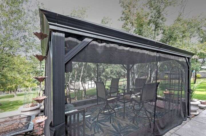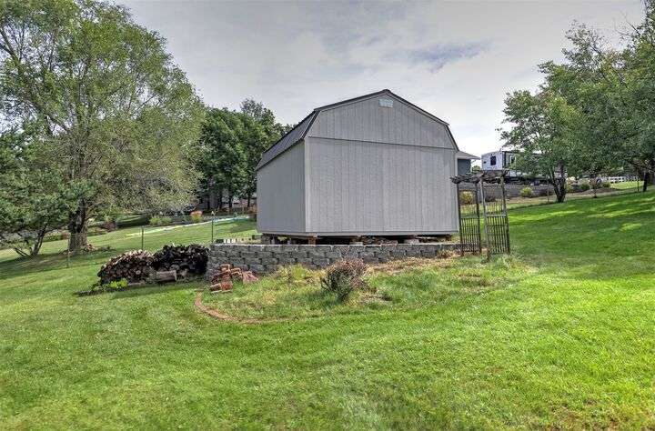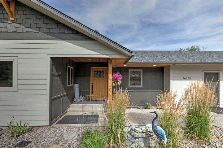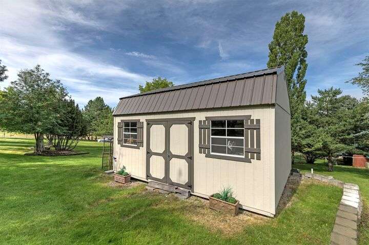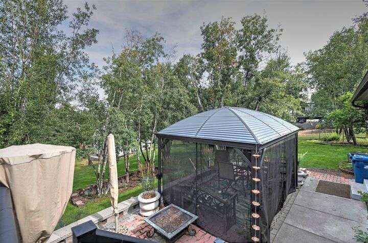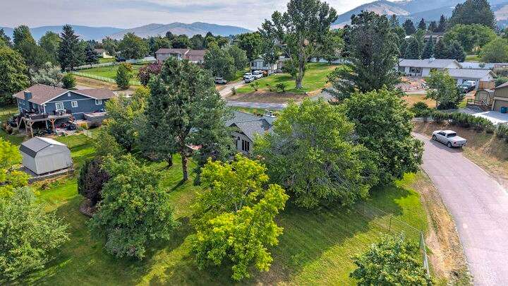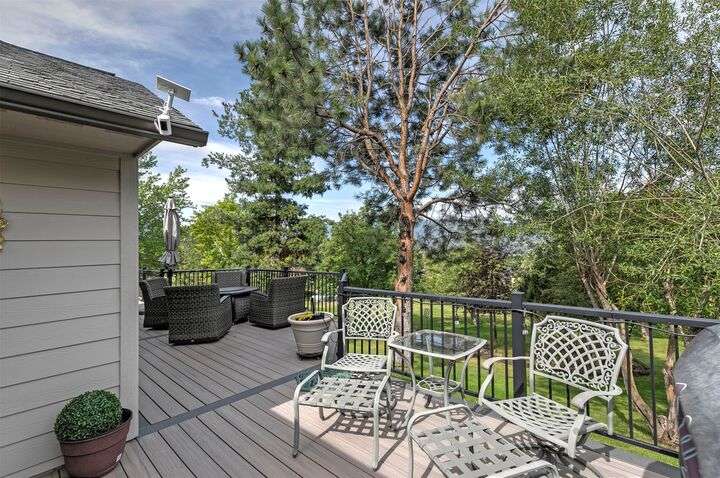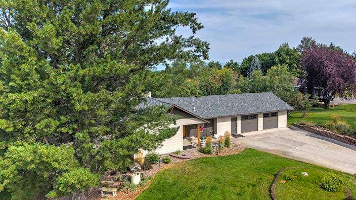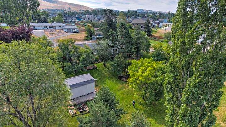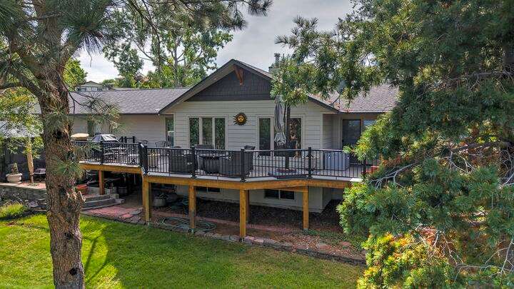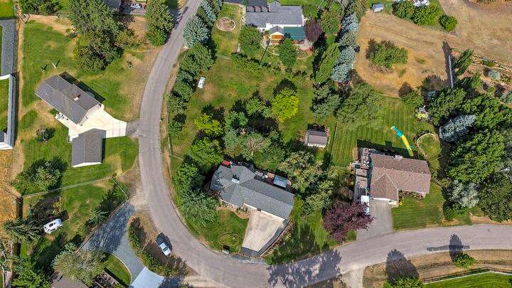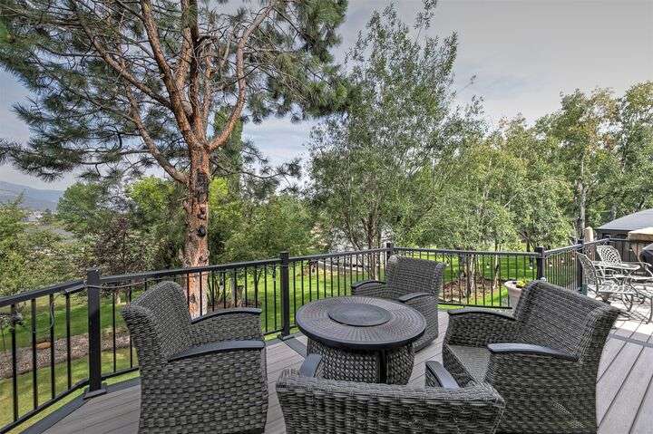 Craving space and serenity without sacrificing convenience? This stunning 4-bedroom, 2-bathroom retreat sits on nearly an acre of manicured paradise, offering mountain views and the perfect blend of privacy and accessibility. The heart of the home features an open-concept design where the gourmet kitchen flows seamlessly into the dining and living areas. Floor-to-ceiling windows flood the space with natural light, while the cozy fireplace sets the mood for relaxing evenings. The knockout kitchen will inspire your inner chef, and the show-stopping back deck, Pure magic for entertaining. The main-floor master suite captures those same breathtaking mountain views, complete with sliding glass doors that open directly to your hot tub oasis. A convenient guest room and full bath complete the upper level. Downstairs, you'll discover two generous bedrooms, another full bath, and a second living area with gas fireplace – perfect for movie nights or a teen retreat. The expansive laundry and craft room means hobbies and household tasks stay organized and out of sight. Your personal outdoor sanctuary features multiple entertaining zones: a spacious lounge area perfect for sunset cocktails, dedicated BBQ space, and a screened gazebo to get out of potential weather. The oversized garage paired with a large storage shed ensures all your toys and tools have a home. The property's crown jewel. That magnificent .92-acre lot with underground irrigation, mature fruit trees, and professional landscaping that creates your own private resort – all while staying close to everything that matters. Ready to live the dream?