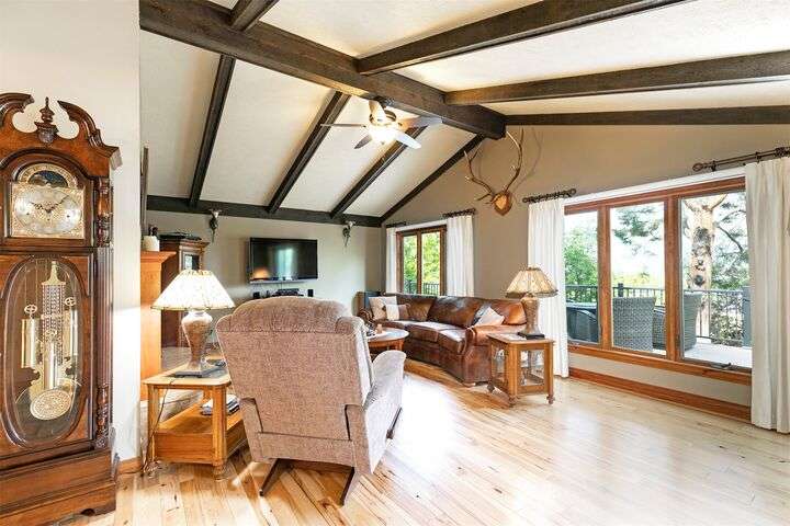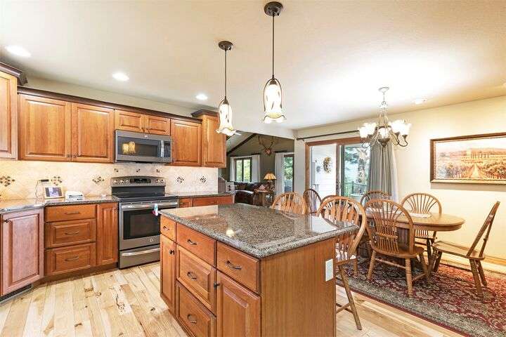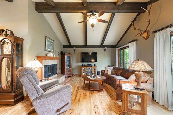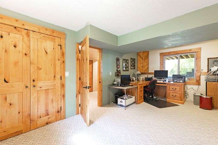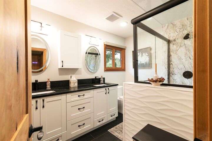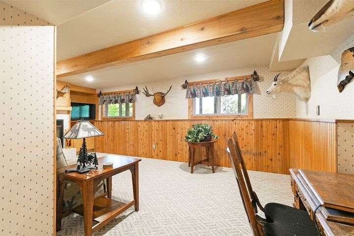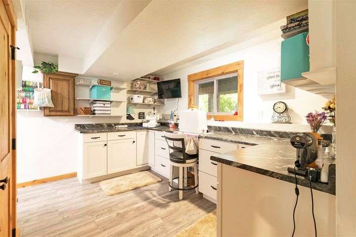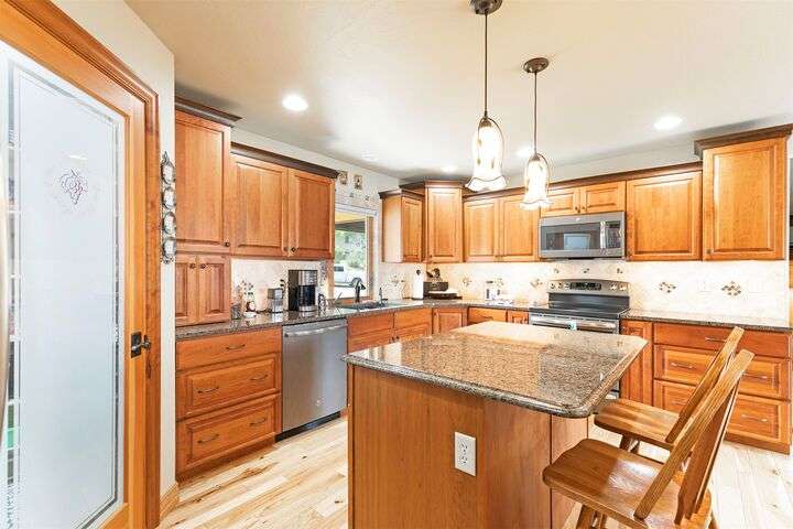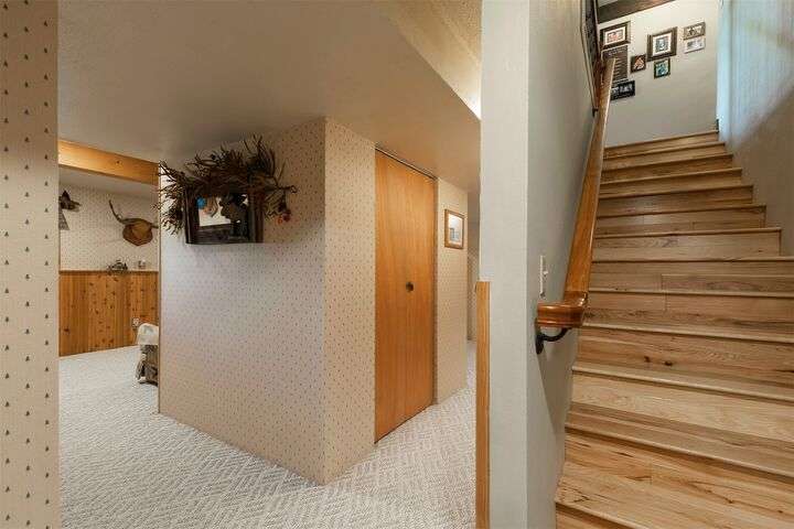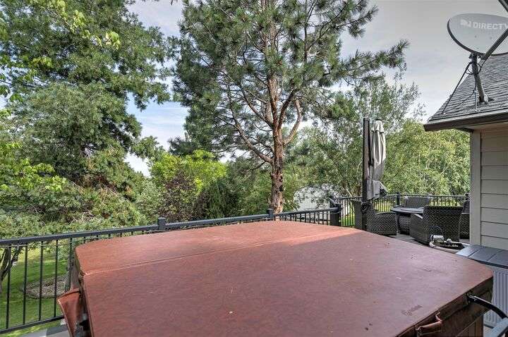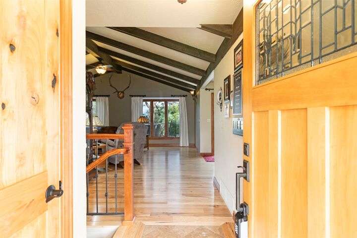 Craving space and serenity without sacrificing convenience? This stunning 4-bedroom, 2-bathroom retreat sits on nearly an acre of manicured paradise, offering mountain views and the perfect blend of privacy and accessibility. The heart of the home features an open-concept design where the gourmet kitchen flows seamlessly into the dining and living areas. Floor-to-ceiling windows flood the space with natural light, while the cozy fireplace sets the mood for relaxing evenings. The knockout kitchen will inspire your inner chef, and the show-stopping back deck, Pure magic for entertaining. The main-floor master suite captures those same breathtaking mountain views, complete with sliding glass doors that open directly to your hot tub oasis. A convenient guest room and full bath complete the upper level. Downstairs, you'll discover two generous bedrooms, another full bath, and a second living area with gas fireplace – perfect for movie nights or a teen retreat. The expansive laundry and craft room means hobbies and household tasks stay organized and out of sight. Your personal outdoor sanctuary features multiple entertaining zones: a spacious lounge area perfect for sunset cocktails, dedicated BBQ space, and a screened gazebo to get out of potential weather. The oversized garage paired with a large storage shed ensures all your toys and tools have a home. The property's crown jewel. That magnificent .92-acre lot with underground irrigation, mature fruit trees, and professional landscaping that creates your own private resort – all while staying close to everything that matters. Ready to live the dream?