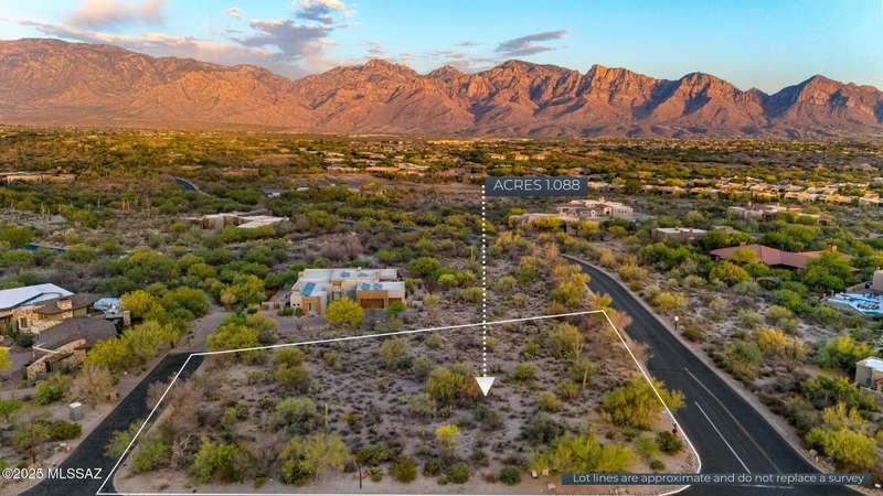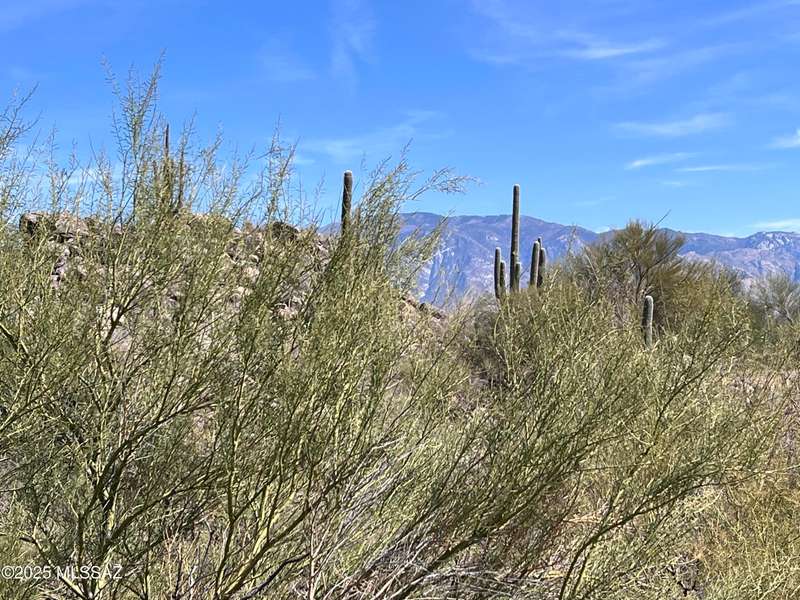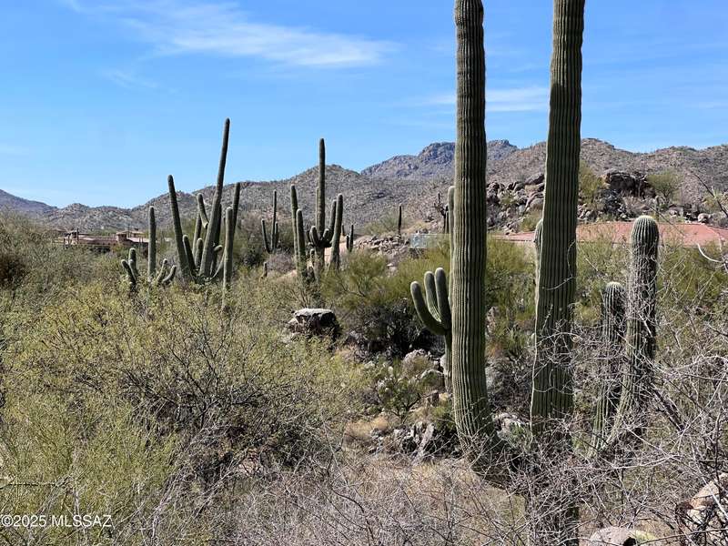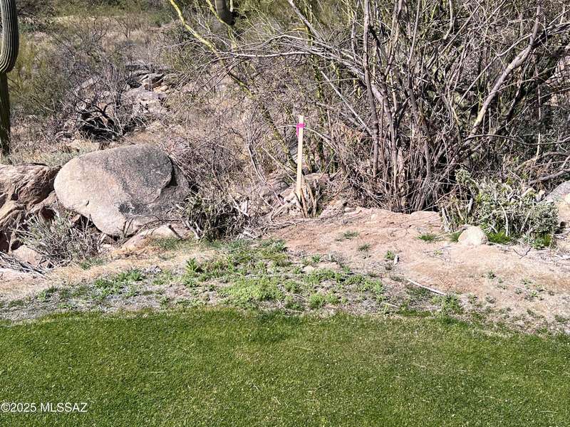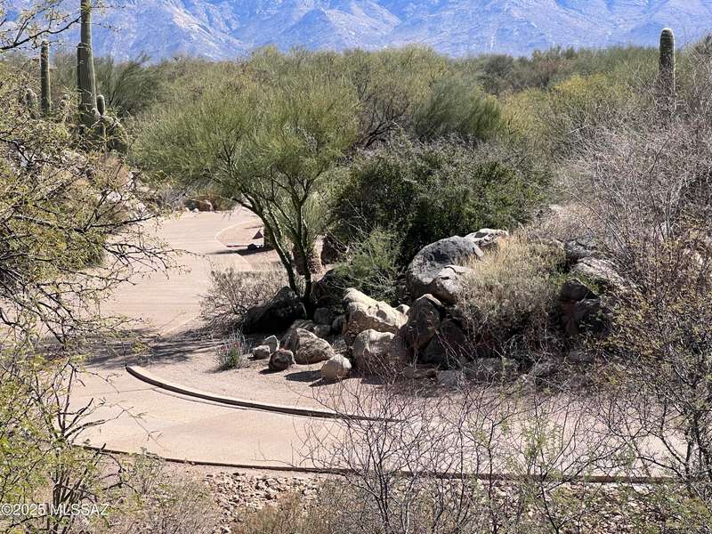 Well placed Golf course lot. Tee box and fairway at your door. Five tee boxes at the lots eastern tip, one touches lot. Cart path boarders the eastern edge. Low traffic, two possible build sites with rock out-croppings. West end flat, next to an existing unit, both have rock out-croppings. Views of the 5 tea boxes (no stray sliced drives here), the fairway and a 180 degree view of the Catalina range and distant mountains. Lots of trees, bushes, and some very nice 100 year old saguaros. Lot has been surveyed as of February 19, 2025, corner points flagged. Lot sits about 20-30 feet above the golf course grade. Path ways have been cut for viewing.