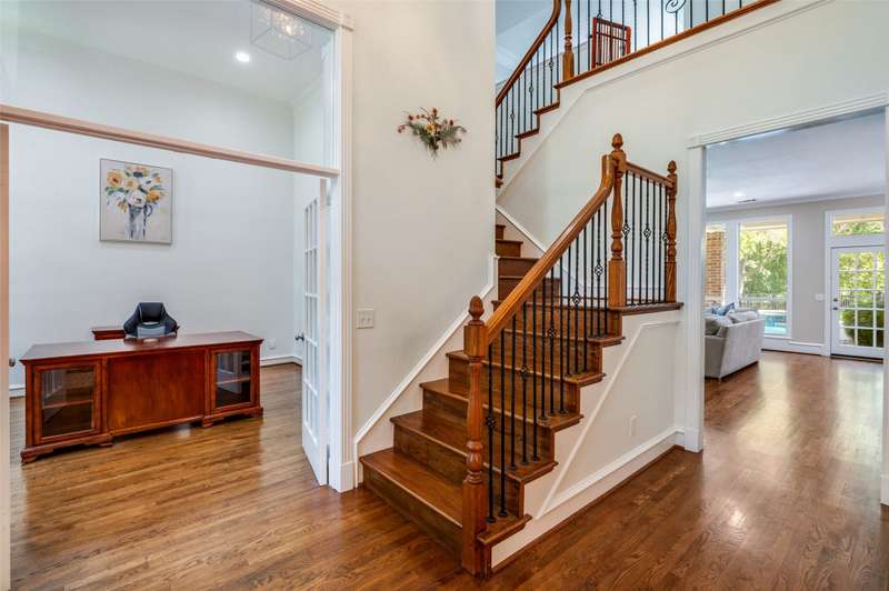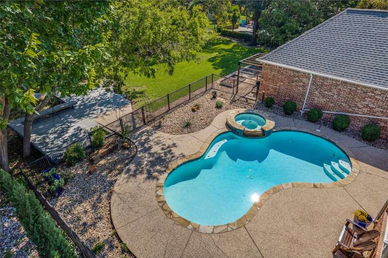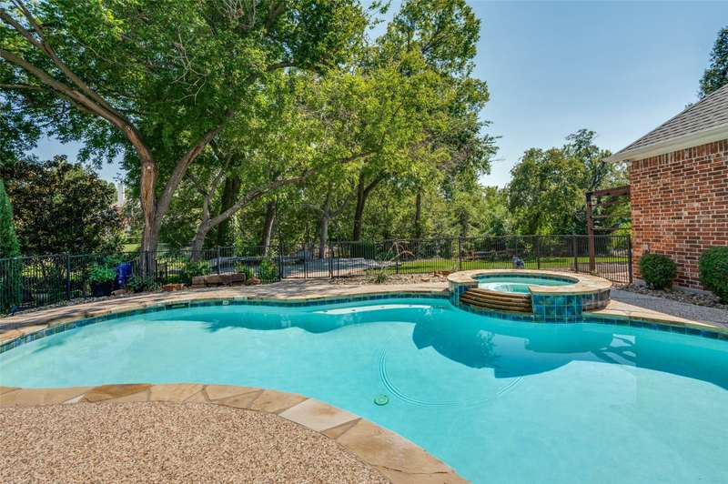 One-of-a-kind and truly unforgettable West Plano home located on a rare, nearly half-acre premier corner lot on a cul-de-sac. With a backyard that feels like your own park, shaded by mature trees and overlooking a peaceful creek, the outdoor living is unmatched. Featuring a sparkling pool and spa, an expansive deck for entertaining, and endless possibilities for creating your dream retreat. This stunning home has a ton of modern upgrades. From the moment you enter, soaring ceilings and sun-drenched spaces set the stage for a home that feels as inviting as it is impressive. The open-concept design with gleaming hardwood floors allows living, dining, and entertaining areas to flow seamlessly, making everyday moments and special occasions equally memorable. At the heart of the home, the updated gourmet kitchen dazzles with stylish finishes, generous quartz counter space, shaker cabinetry with slow close, brand new dishwasher, and a layout that opens gracefully to the family room and dining area. Its the perfect gathering place for everything from casual breakfasts on the side porch to holiday celebrations in the formal dining room. Natural light fills the home, while the dedicated office with floor-to-ceiling bookshelves and gas fireplace creates the ideal work-from-home escape. Five spacious bedrooms provide comfort and versatility, including two conveniently located on the first floor ideal for guests or easy living. Updated four and a half bathrooms with new vanities ensure effortless convenience for family and guests. Recent upgrades, including new hot water heaters, two replaced AC units, fully paid solar panels deliver peace of mind and modern efficiency. See transaction desk for more updates and upgrades. With its cul-de-sac location, thoughtful upgrades, and breathtaking indoor-outdoor living, walking distance to Daffron and near Legacy West, this home isnt just a houseits the lifestyle youve been dreaming of.