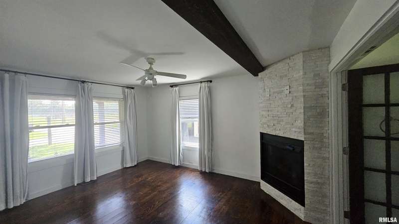 Beautifully renovated ranch home with breathtaking Canton Lake view!! Primary suite has fireplace, roomy bathroom and walk in closet. 2nd Bedroom has lovely built ins for TV, books, or game. You can have a home office or 3rd bedroom as well! Open concept Living room/kitchen/dining with vaulted ceiling and 2nd fireplace. Sliding doors to back yard and a large kitchen window for the magnificent view! 1 acre lot, Main floor laundry, partial basement and 2nd full bathroom as well. Large 2 car garage has back workshop, for man cave or she shed!!! There is a circle drive and this home has very few steps! Do not let this one slip through your fingers, its a keeper!! Basement has Helitech brackets with a transferable warranty!
