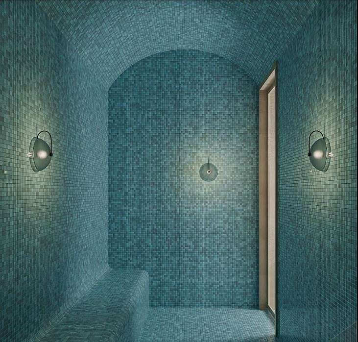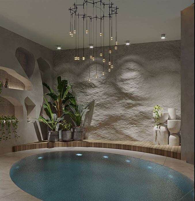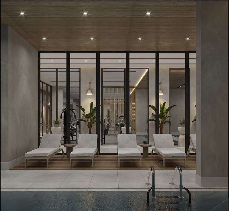 The single-block complex spans an area of 2553 m² and features an array of amenities, including indoor and outdoor swimming pools, a jacuzzi, gym, sauna, massage rooms, Turkish bath, steam room, entertainment room, outdoor parking, BBQ area, communal garden, janitor services, and 24/7 security.