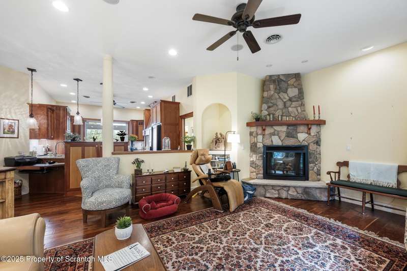 Discover the perfect blend of comfort, craftsmanship, and natural beauty in this custom-built ranch nestled on 1.5 private acres. Thoughtfully designed with attention to every detail, this home features radiant heat floors with six zones, cork flooring in the kitchen and laundry, and rich hardwood floors throughout. The architecturally designed kitchen showcases custom cabinetry, granite countertops, and quality finishes that make it as functional as it is beautiful. Relax by the gas fireplace in the living room, unwind in the screened-in porch overlooking serene landscape or enjoy the front porch offering stunning views!
