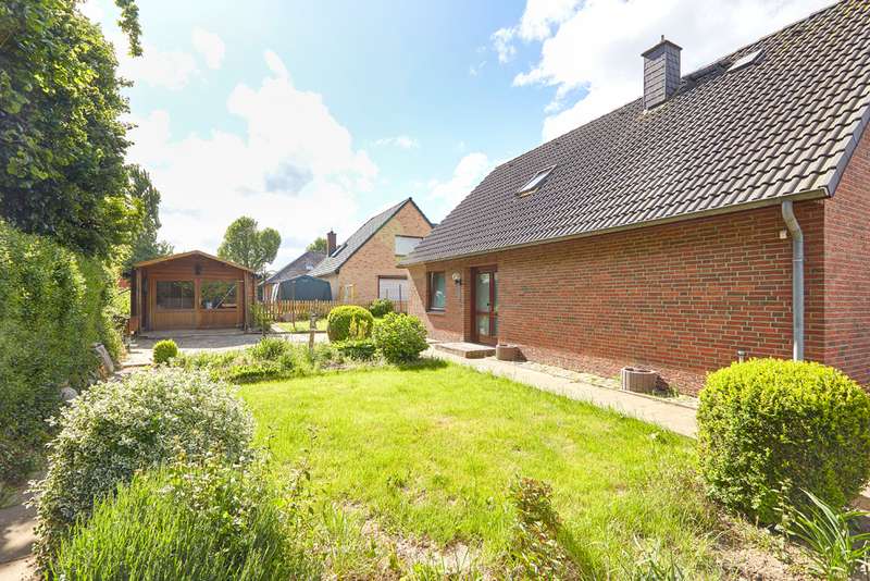 Honestly built. Designed for versatility. Ready for something new. This detached house of solid construction stands for substance and structure - and for the opportunity to turn it into a contemporary home. The property has been lived in and cared for by one family for decades. Now it offers the space for the next life plan. On the first floor, the layout is impressive with approx. 75 m² of living space, two bedrooms, a spacious living and dining area, kitchen, shower room and vestibule with central hallway. The rooms are clearly laid out, the substance is solid. The upper floor (approx. 48 m²) opens up additional perspectives: Two large rooms, a bathroom with bathtub and prepared kitchen connections form the basis for a separate residential unit. Permission has already been granted for use as a granny apartment - ideal for older children, guests or a combination of living and working. The full basement of approx. 70 m² is functional and can be accessed separately via an external staircase. Storage space, workshop, hobby or storage area - real utility value is created here. The plot measures approx. 561 m² and is well proportioned. The garden is well-kept and uncomplicated. A solid garage with additional storage room completes the ensemble. And there is a small wooden house - for bicycles, garden tools or quieter dreams. This property is not a promise of a new build. But an opportunity - for people with an eye for the essentials, with ideas, with the desire for a home that grows with them.