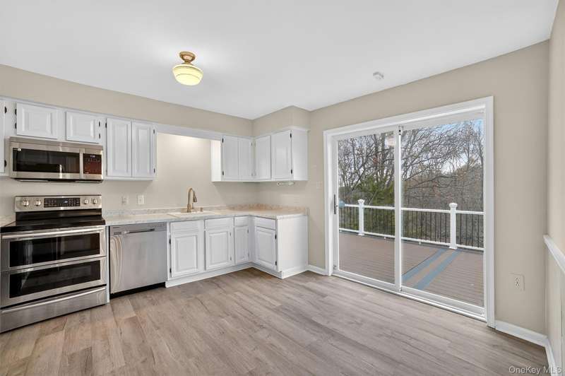 Welcome to this beautifully updated and well-maintained home situated on a serene lot. This move-in-ready home offers a perfect blend of style and functionality, featuring sun-filled living and dining areas with elegant wood-look flooring that create a warm and inviting flow throughout the main level. The upgraded eat in kitchen features sliding doors opening to an oversized trek deck overlooking a peaceful, park-like backyard -ideal for entertaining and everyday enjoyment. The upper level boasts a generous primary suite with a walk-in closet and renovated full bath and sliders out to the oversized deck, along with two additional bedrooms and an upgraded hall bath. The bright and spacious living areas flow seamlessly throughout the first floor, while the finished lower level provides versatile space for a home office, gym, recreation room or media room. Above all this home is conveniently located and close to parkways, golf course, town shopping, restaurants, schools, major shopping, p