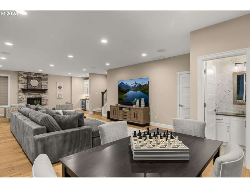 HUGE TURF BACKYARD & GREENSPACE VIEWS! Rare opportunity to own a quality Noyes built home on oversized lot w/ a 3-Car Wide Garage! Privately positioned on a quiet street in NW Bethany/Bonny Slope neighborhoods with TOP RATED SCHOOLS. This stunning 6-bedroom home sits along protected greenspace offering gorgeous views and privacy and has over $220,000 of builder options included. Designed and built by award-winning local builder Peter Noyes as his personal residence, every inch of this 4,342 sq. ft. home reflects timeless craftsmanship, thoughtful design, and high-performance living. The open-concept main level is anchored by a chef’s kitchen with Dacor appliances, a Miele coffee maker, dual wine fridges, and a massive prep island—perfect for entertaining. The two-story great room features floor-to-ceiling windows, built-ins, and a cozy fireplace that invites you to settle in and stay awhile. Downstairs, the expansive family room offers the ultimate hangout space, complete with a full bar, billiards area, ice maker, and built-in surround sound for movie nights or game days.The primary suite is a true retreat, featuring a spa-like bath with a freestanding soaking tub, heated floors, and peaceful views of the trees beyond. Additional bedrooms offer flexibility for guests, home offices, or multigenerational living. Step outside to a covered outdoor living area with skylights, built-in heaters, and a gas BBQ hookup. The deck spans the entire width of the home, offering plenty of room to dine, lounge, and entertain while taking in the treetop views. Below, the huge, low-maintenance yard is surrounded by artificial turf and extensive landscape lighting—perfect for evenings under the stars .Tech-forward and thoughtfully built, this home includes Control4 automation, a commercial-grade Wi-Fi system, whole-home water softener, built-in central vac. BONUS... hot tub, TVs, window coverings, appliances and garage storage ALL STAY! This home is 100% Turn-Key Ready!