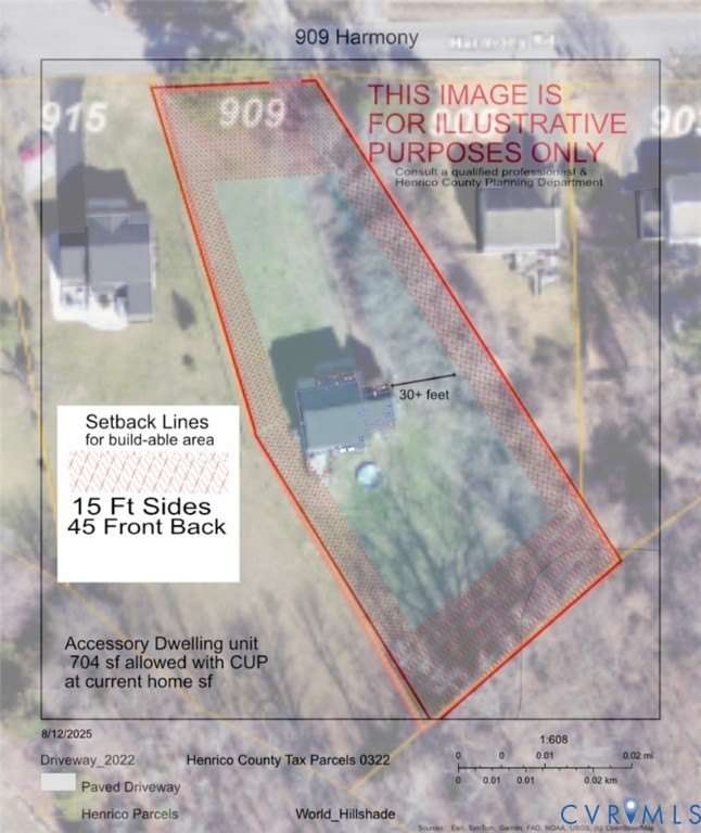 Great New Price! Modern Luxury on a Private 3/4 Acre Cul-de-sac in Glen Allen! Discover your dream home at 909 Harmony Rd! This stunning residence, nestled on a peaceful cul-de-sac just a minute off I-95, offers the perfect blend of modern elegance and convenient living. Situated on a spacious 3/4 acre lot, this property provides ample privacy and outdoor space to relax on the covered front porch or deck. Step inside to find a large, open-concept family room flowing seamlessly into the dining area and a gorgeous, modern kitchen, all with gorgeous bamboo flooring. The kitchen is a chef's delight, featuring sleek black stainless Samsung appliances, luxurious leathered finish granite countertops, and a massive 6'x4' peninsula - perfect for entertaining! --Key Features--: Expansive Lot: 3/4 acre cul-de-sac lot offering privacy and space. Open Concept Living: Large family room open to dining area. Stylish Flooring: Solid Bamboo flooring throughout the entire first floor. High Ceilings: 9' ceilings on the first floor, adding to the spacious feel. Luxurious Master Suite: Huge walk-in closet and a dream bathroom with 2 separate vanities, a 6'x5' shower with floor-to-ceiling ceramic tile, rain shower head, and shower seat. Modern Color Schemes: Stylish interior and exterior color palettes. Great Neighborhood There is NO HOA for the large surrounding homes which are beautifully cared for along the publicly maintained street. Convenient Location: Easy access to interstates 295, 95, and 64. Bright Listing agent is directly related to owner.
