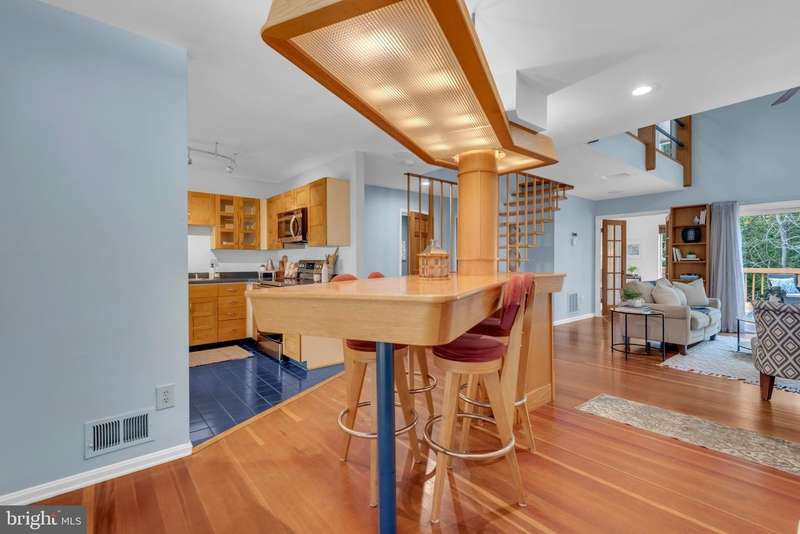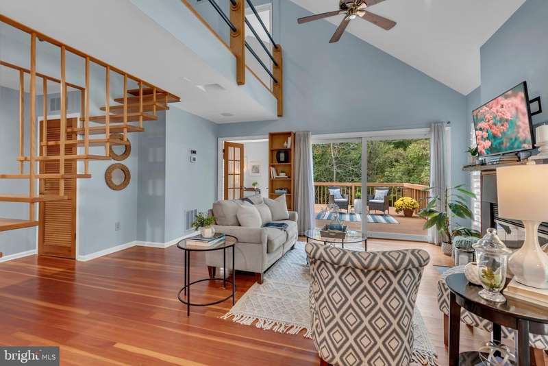 Open Saturday, 10/4 from 10-12pm This lovely 3 bed, 2.5 bath Duplex is picture perfect. Beautiful teak wood throughout the kitchen and oakwood floating stairs give this home a uniquely nautical charm. High ceilings and soaring windows allow for the home to have an airy light filled feel. Much of the custom woodwork was done by the noted boatbuilder and woodworker Larry Belkov. With a wood burning fireplace, heart-pine flooring, renovated kitchen with stainless appliances, fresh paint throughout and updated back deck this home is move in ready! It even has a sliding bookcase that reveals a fun, secret closet in the office on the main level. Nestled on a cul-de-sac, the large deck backs to trees with for optimum privacy. Mariners Pointe is a vibrant community in the heart of Annapolis offering a nice blend of Duplex and Townhouse homes surrounded by lush, wooded landscape. Residents enjoy access to a private pool and club house..all within minutes of the scenic shores of Back Creek and the bustling charm of DT Annapolis. Conveniently located minutes from the fabulous Quiet Waters Park, shopping centers, and all points north and south.