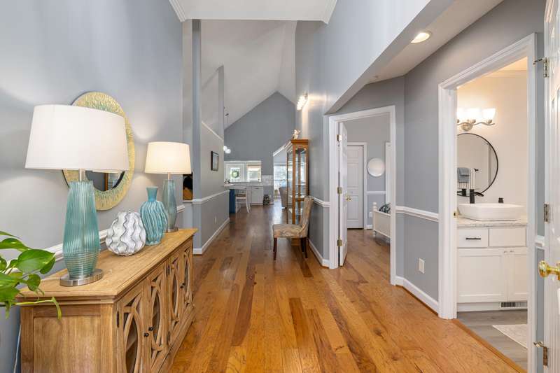 Welcome to your dream home on the #3 green of The Players Course, in scenic, gated Wyboo Plantation - where luxury meets lifestyle. From the moment you walk through the new front door, you'll love all the modern touches in this recently remodeled 3BR/2.5BA home. The finished room over the garage, w/ closet & 1/2 BA would make a perfect 4th BR or family room. The kitchen is a chef's dream offering beautiful quartz countertops; recently painted cabinets w/ soft close features & pull-out shelving; custom island w/ overhang for bar stools; subway tile backsplash w/ blue tinted grout; Jenn-Air slide in range w/ down draft; Jenn-Air microwave w/ versatile cooking capabilities & new Whirlpool refrigerator & dishwasher. The spacious owner's suite features a barn door entrance into ample closet space, leading to a comfortable en-suite w/ new dual vanity countertop, new mirrors, gorgeous blue tile backsplash & walk-in tiled shower. Other features/upgrades include new fixtures & lighting throughout; new interior paint; 2023 architectural roof; 2025 HVAC units; 2023 Rinnai tankless WH; engineered hardwood in lower level; new carpet in upper level; enclosed sunroom w/ custom bookcases; composite rear deck w/ patio area & firepit; new sod & landscaping; encapsulated crawlspace; termite bond; new septic; extra deep garage w/ storage room & more.