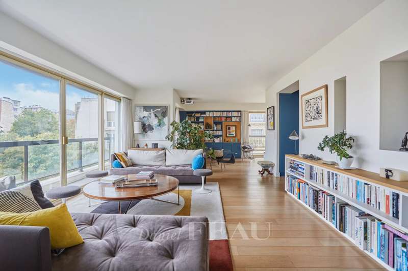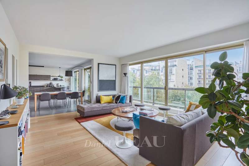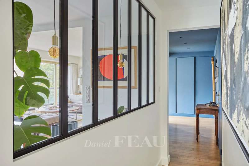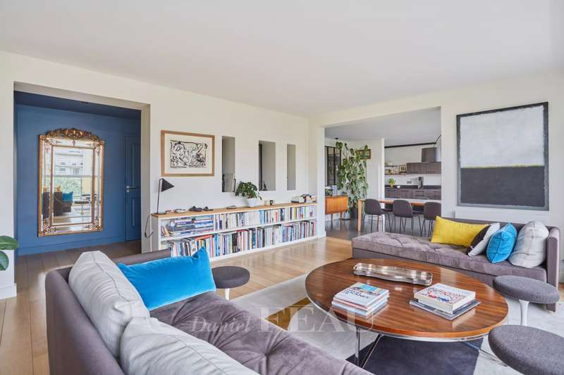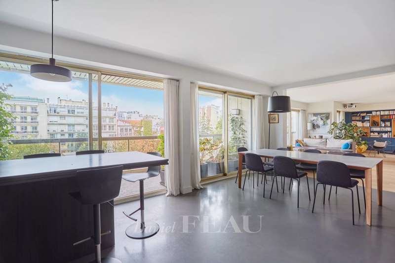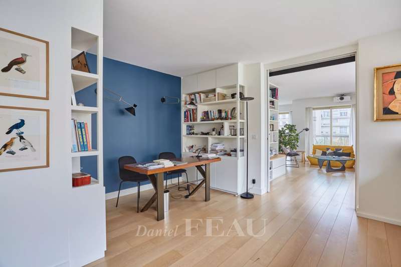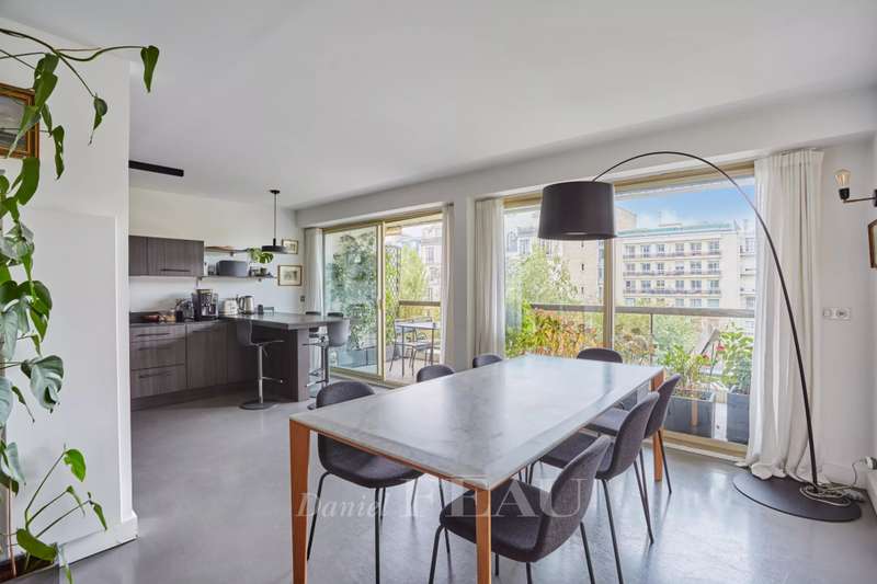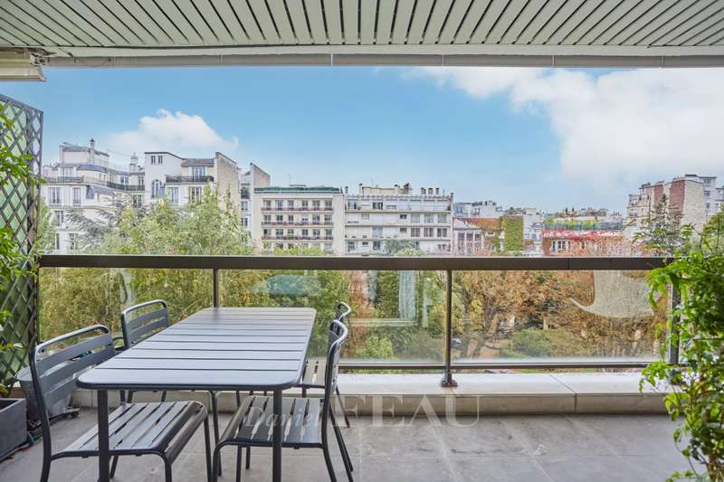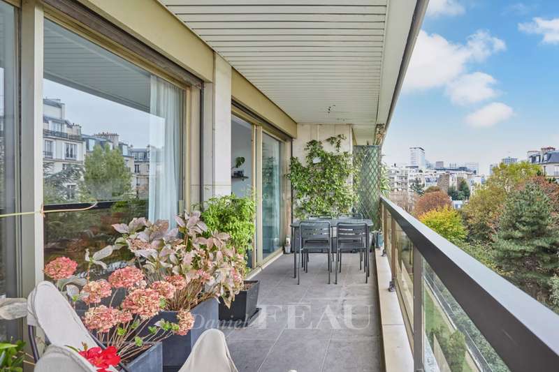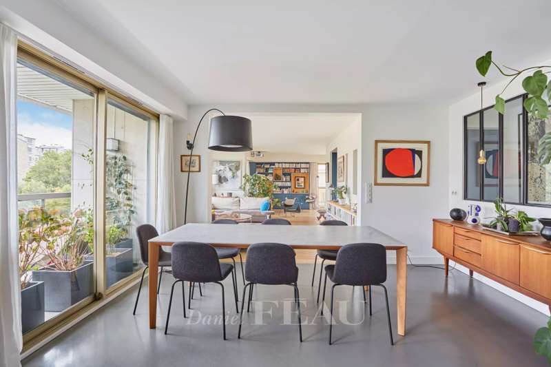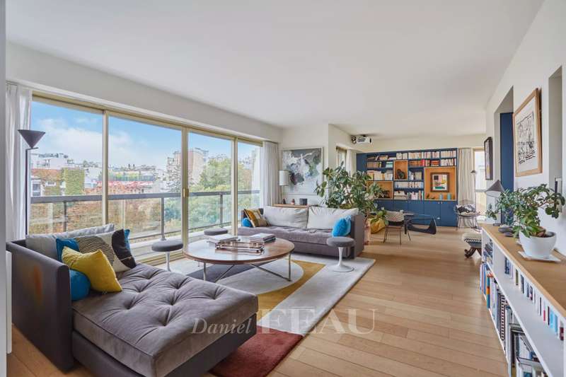 Ranelagh/Mozart neighbourhood. This 185 sqm apartment is on the 4th floor of a relatively recent building located near Avenue Mozart, the shops and Molière High School. South-facing and overlooking a garden, it includes a double living/reception room, a dining room, a kitchen with dining facilities opening onto a 31 sqm terrace, a study, a master suite with a bathroom, a dressing room and a wc, two further bedrooms sharing a shower room, and a guest wc. With a cellar. A double lock-up garage in the building may be acquired at extra cost.