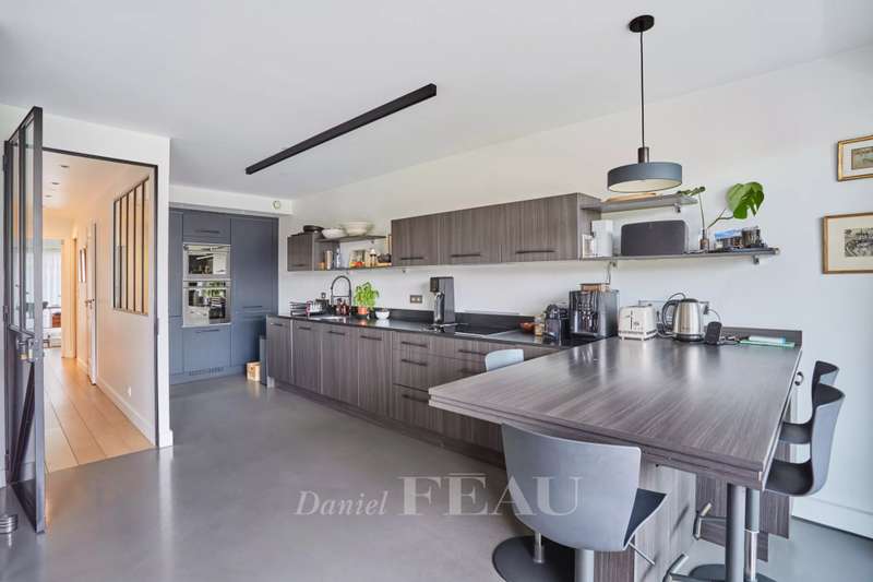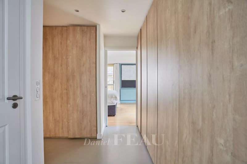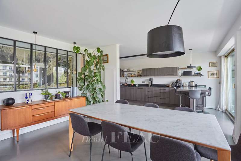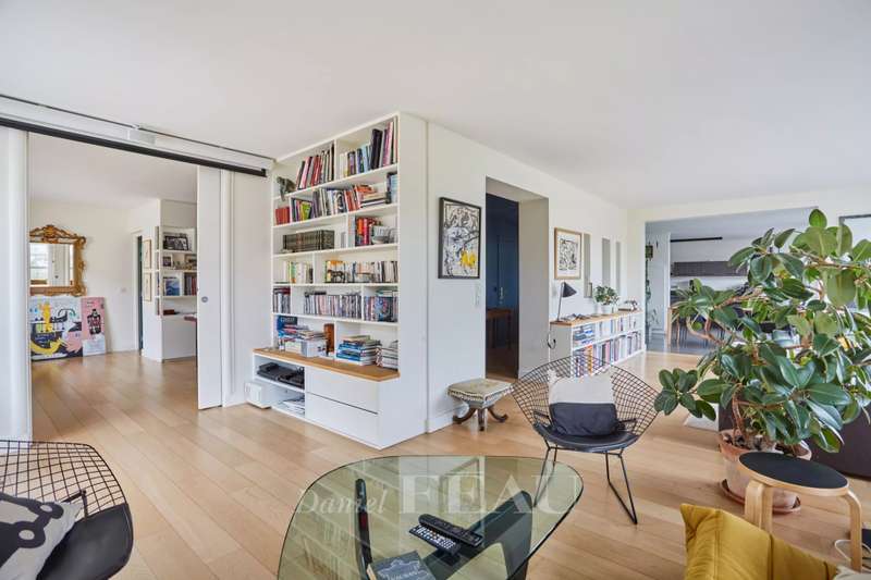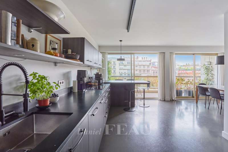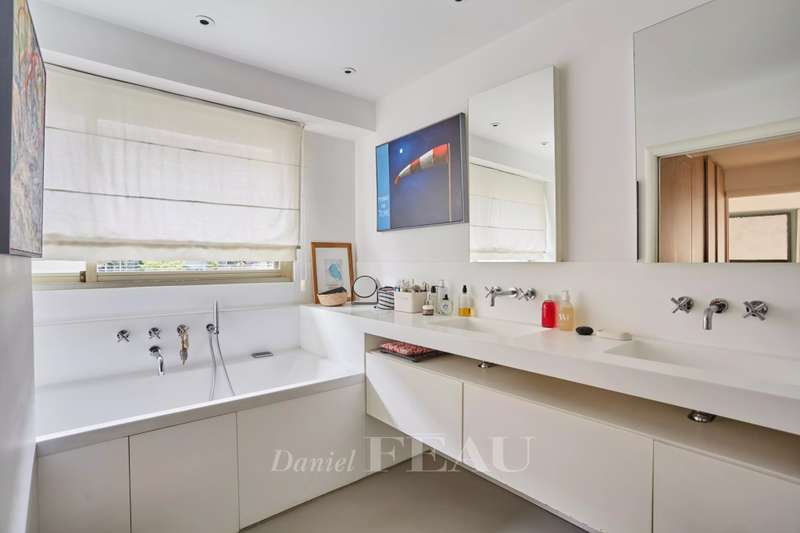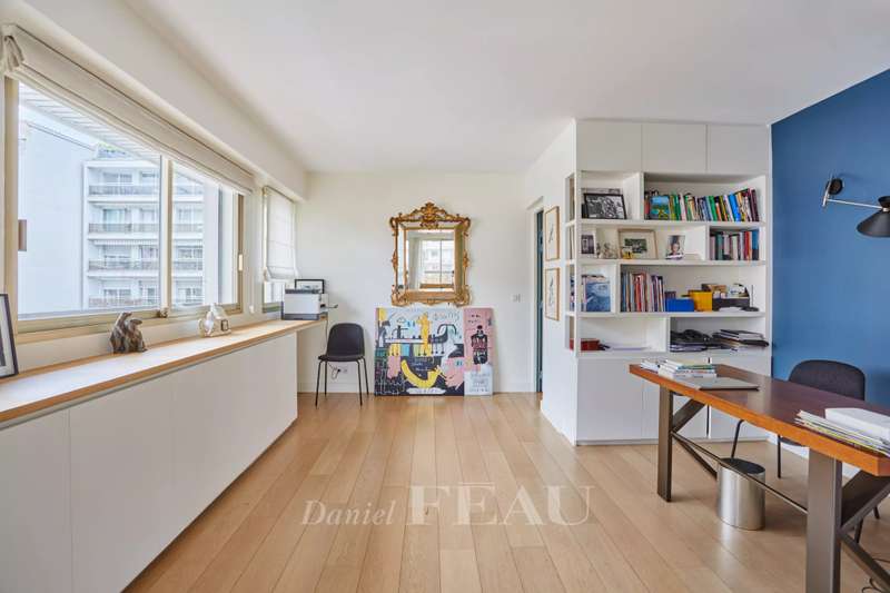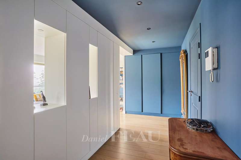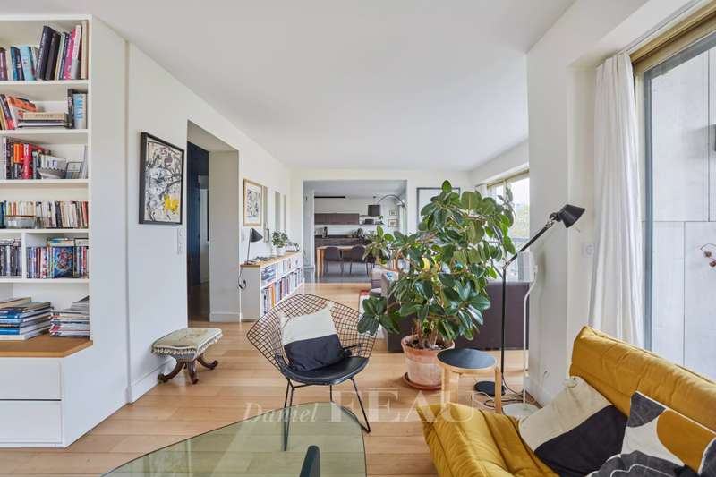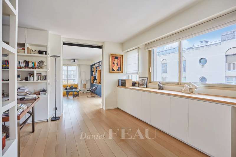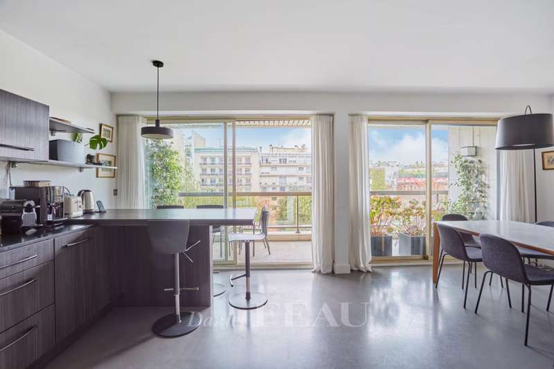 Ranelagh/Mozart neighbourhood. This 185 sqm apartment is on the 4th floor of a relatively recent building located near Avenue Mozart, the shops and Molière High School. South-facing and overlooking a garden, it includes a double living/reception room, a dining room, a kitchen with dining facilities opening onto a 31 sqm terrace, a study, a master suite with a bathroom, a dressing room and a wc, two further bedrooms sharing a shower room, and a guest wc. With a cellar. A double lock-up garage in the building may be acquired at extra cost.