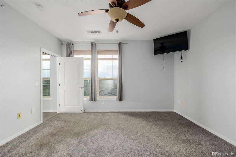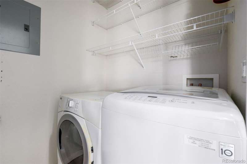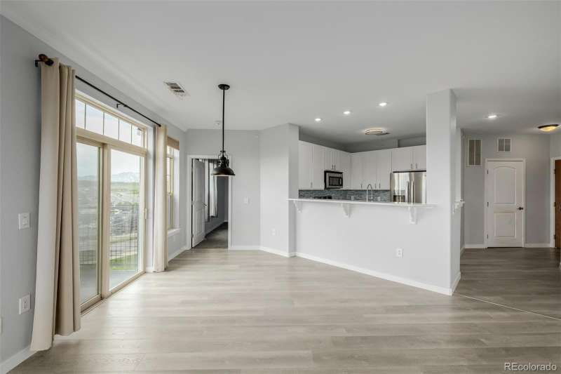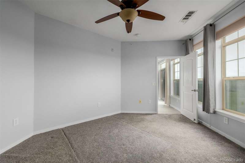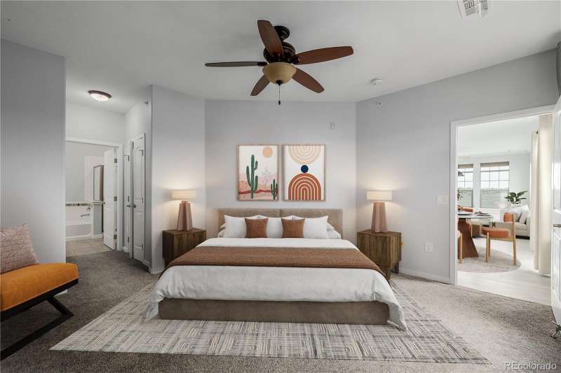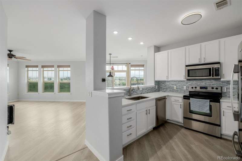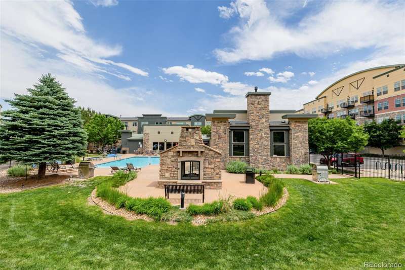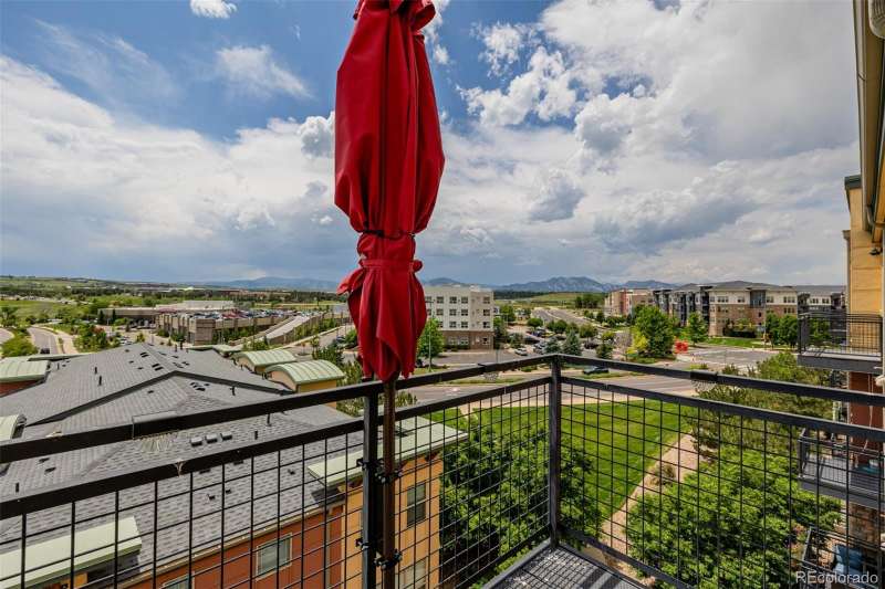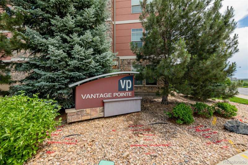 Incredible top floor corner Flat with views of the front range and vast open space. Open Floorplan with incredible light from oversized windows and SW Patio. Updated kitchen with quartz countertops, white cabinets with 42' uppers for extra storage, pantry, and stainless appliances. Great room includes a cozy electric fireplace to warm up to while admiring the Flat Irons. Primary Bedroom features a large walk in closet and secondary closet and a 4 piece bath with large soaking tub and walk in shower. Secondary ensuite has a massive walk-in closet and attached full bath. Laundry room offers full size washer and dryer and additional storage. Parking is conveniently located near the elevator in the parking garage and an additional 1 car detached garage with storage shelving. Vantage Pointe has an amazing community clubhouse with pool, hot tub and fully equipped gym. Private detached single car garage with storage shelving and EV charging outlet available for $30,000- separate deed from condo.
