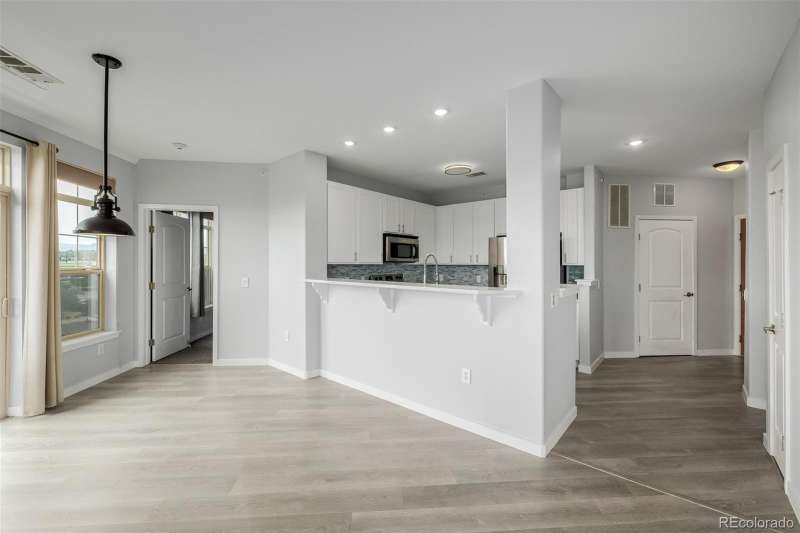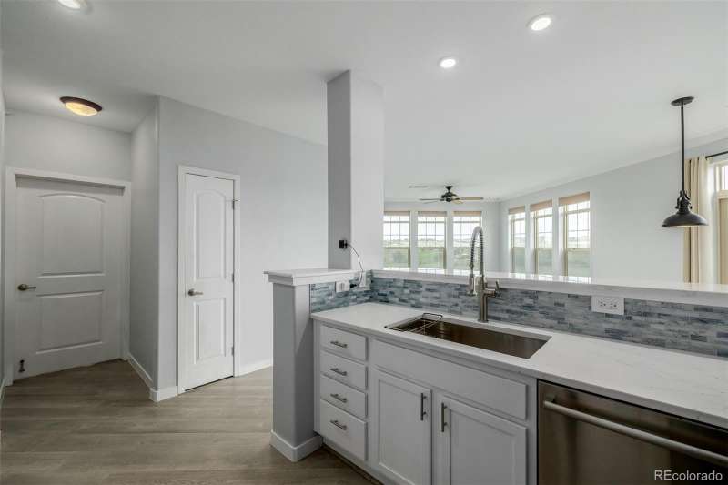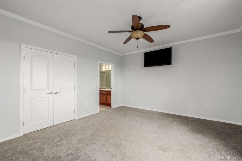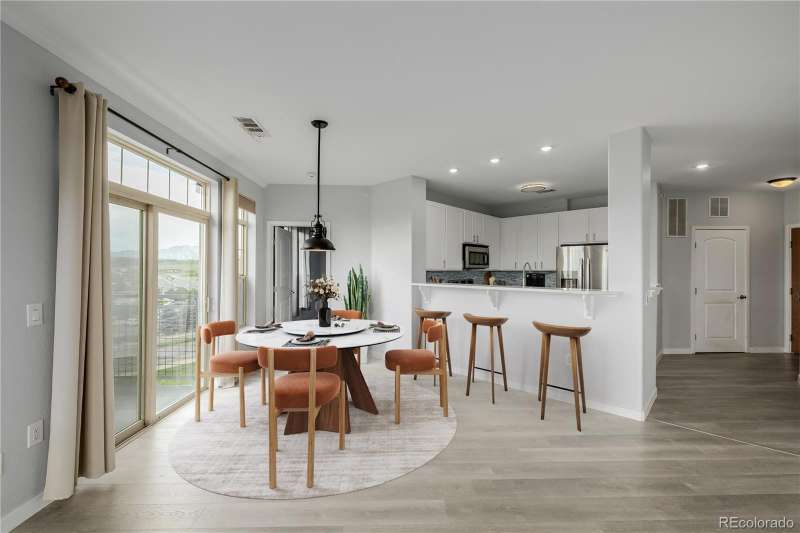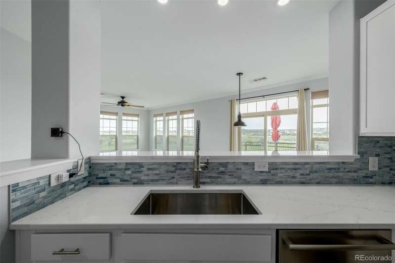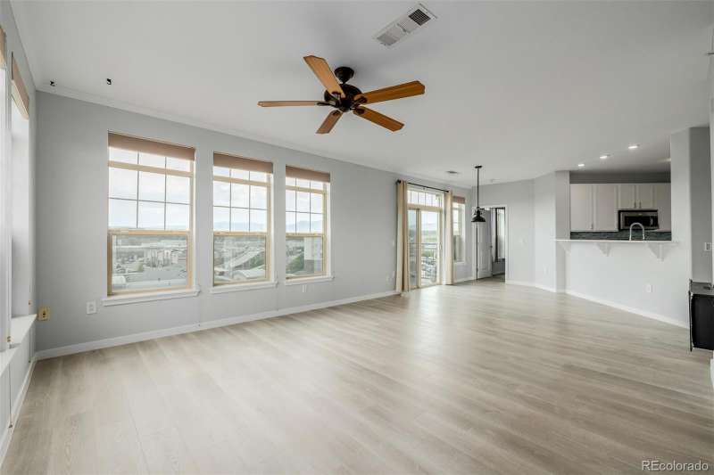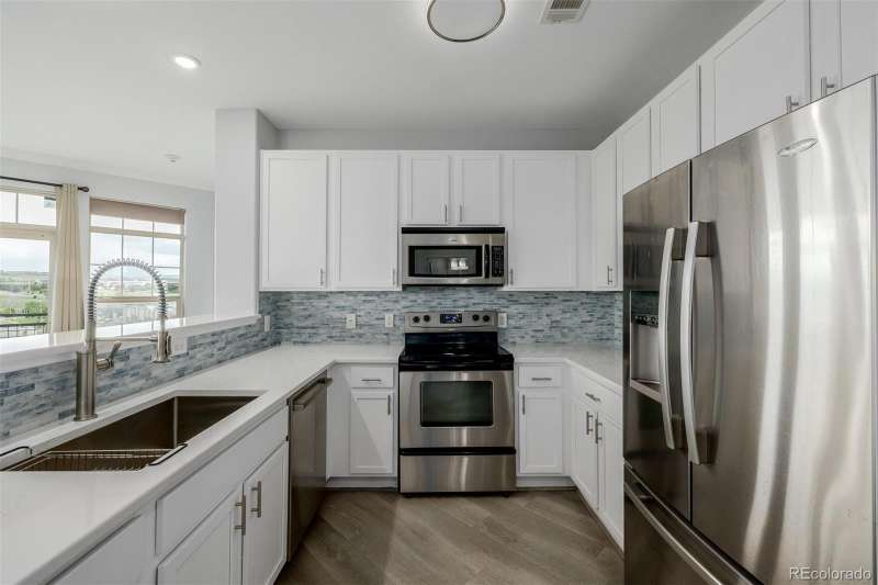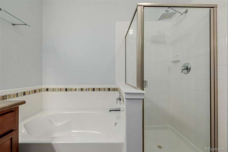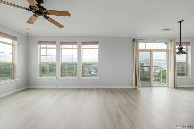 Incredible top floor corner Flat with views of the front range and vast open space. Open Floorplan with incredible light from oversized windows and SW Patio. Updated kitchen with quartz countertops, white cabinets with 42' uppers for extra storage, pantry, and stainless appliances. Great room includes a cozy electric fireplace to warm up to while admiring the Flat Irons. Primary Bedroom features a large walk in closet and secondary closet and a 4 piece bath with large soaking tub and walk in shower. Secondary ensuite has a massive walk-in closet and attached full bath. Laundry room offers full size washer and dryer and additional storage. Parking is conveniently located near the elevator in the parking garage and an additional 1 car detached garage with storage shelving. Vantage Pointe has an amazing community clubhouse with pool, hot tub and fully equipped gym. Private detached single car garage with storage shelving and EV charging outlet available for $30,000- separate deed from condo.
