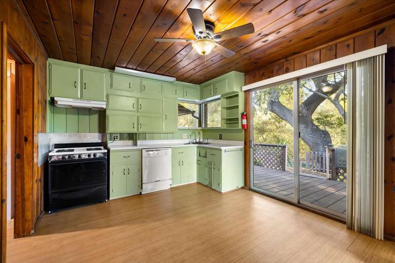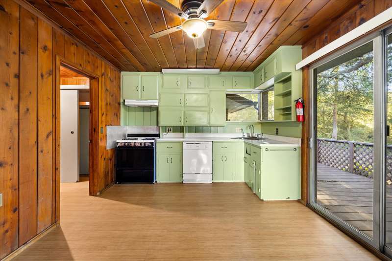 2 attached homes. The first side of the duplex is a 2-bedroom, 1-bathroom original home lined with gorgeous Douglas fir tongue-in-groove ceilings and walls, a retro kitchen, and two large picture windows looking out into the valley, making this the perfect cabin to be in nature. The second side of the duplex is a 1-bedroom, 2-bathroom home with an attached garage.