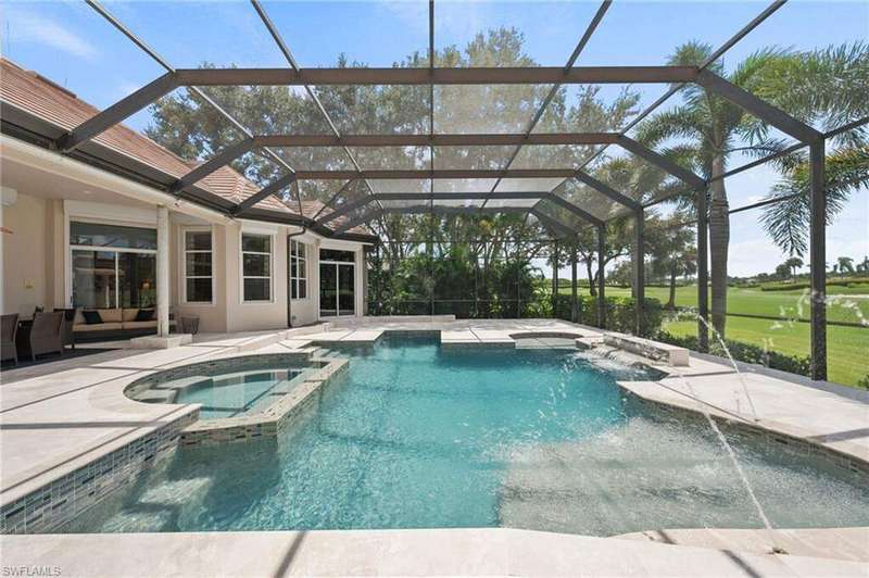 TRANSFERABLE GOLF MEMBERSHIP IMMEDIATELY AVAILABLE with this inviting estate home on almost an acre of land with sunny golf views. Upon entering the grand foyer you are immediately captured by the living room graced with a beautiful fireplace and adjacent formal dining room. The spacious home office offers custom built-ins to display your treasures and the floor plan invites at every turn. You are going to love entertaining in this home with a large kitchen offering stainless steel appliances, a large prep island and separate island with bar stool seating and a butler's pantry for even more storage and prep space. The family room with fireplace and zero corner sliders leading into the lanai is conveniently located just off the kitchen so for optimal entertaining. The three en suite bedrooms are tucked into a wing by themselves for privacy and the luxurious primary suite features a separate flex room surrounded by windows, double walk-in closets and an inviting wet bar/coffee bar. The spa-inspired primary bath features an oversized soaking tub, masterful shower and atmosphere of pure relaxation. The amazing lanai with expansive views of the 9th hole of the lakes course features a completely renovated pool with updated tiling and integrated spa. There is bathroom access directly from the pool area for maximum convenience. This home also features an enormous casita ready for your choice of uses be it a 5th guest suite, fitness area or media space. It is complete with a full kitchen and bath plus infrared sauna! The home features so many updates and upgrades including a full house generator, surround sound, 1000-gallon LP tank, 4 AC units (3 replaced in 2021), separate golf cart garage off the back of the casita with direct access to the golf course, pocket sliding doors to the lanai, two working chimneys but electric fireplaces now installed, 4 water heaters and gorgeous lighting throughout. Roof new in 2015 is equipped with comprehensive hurricane protection and lightning protection. The last 11 pictures are virtual renderings. Quail West offers an amenity rich lifestyle and is close to sandy gulf beaches, shopping, dining, arts destinations, nature and more.