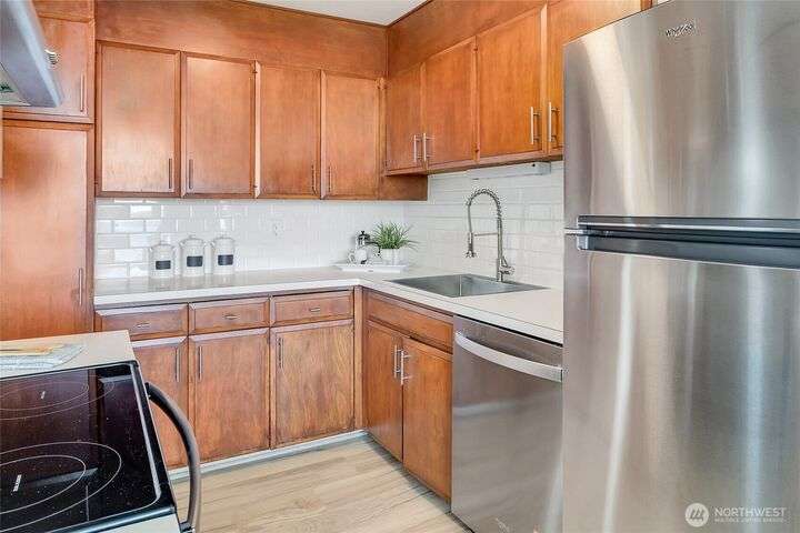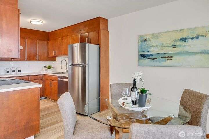 Views Location Views!!! Life is beautiful in this stunning, spacious, gorgeous South facing unit on Queen Anne’s coveted South slope. Naturally bright w/ South & West exposure, abundant light streams in from the numerous windows, which look out to a panoramic living view of The Space Needle, downtown, Elliott Bay, Mt Rainier & more! Classic updates throughout w/ gorgeous LVP flooring underfoot, make this open floor plan shine! The beautiful open kitchen, 2 large bedrooms w/ fabulous closets, 1.5 baths & an in-unit W/D hookup is superb. An 86 Walkscore finds you only moments from parks, restaurants, cafes, easy transit to SLU & Downtown Seattle. HOD’s include prop taxes, W/S/G, cable & more. $5,000 Buyer credit for Dues & pet friendly.