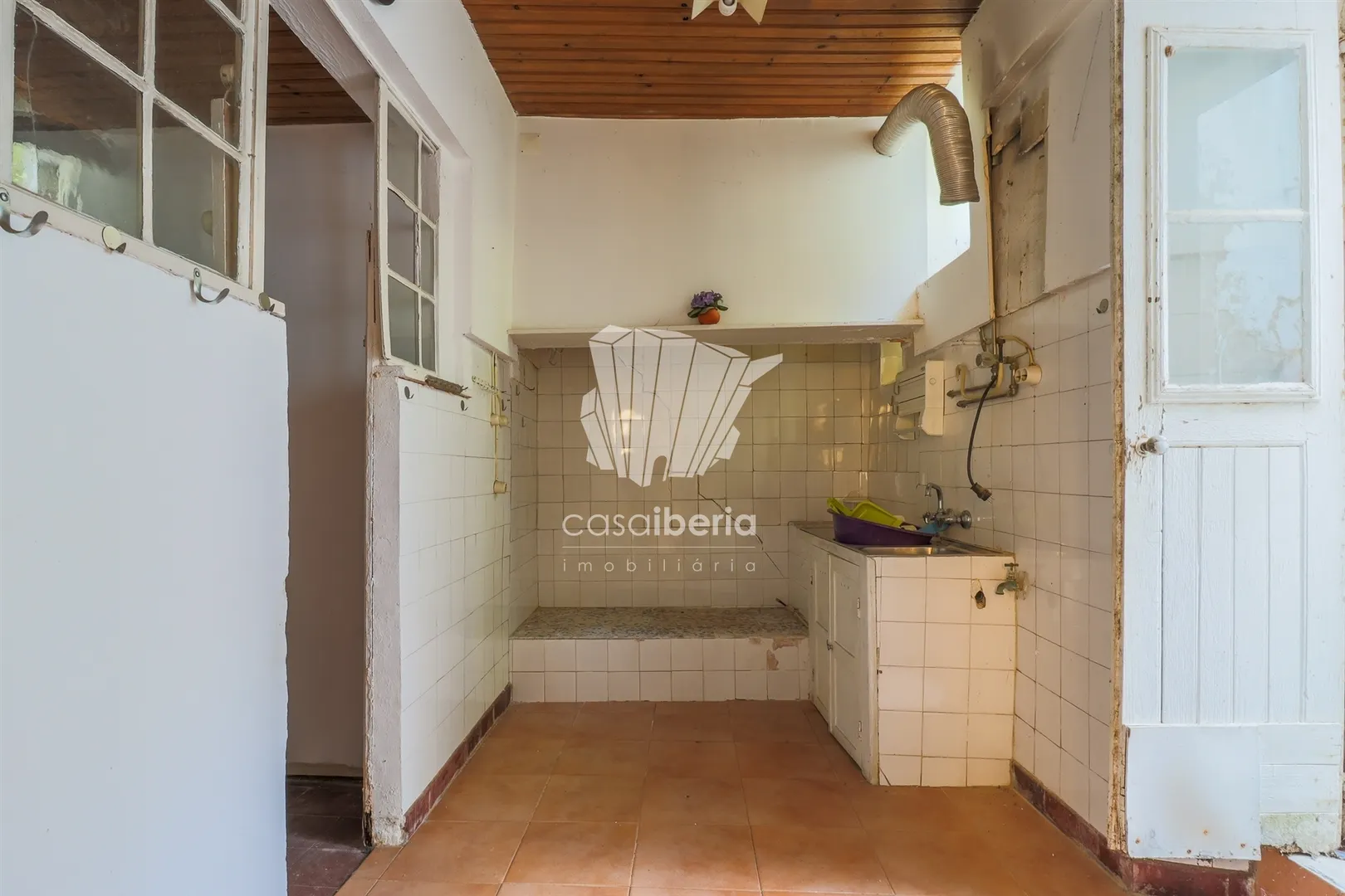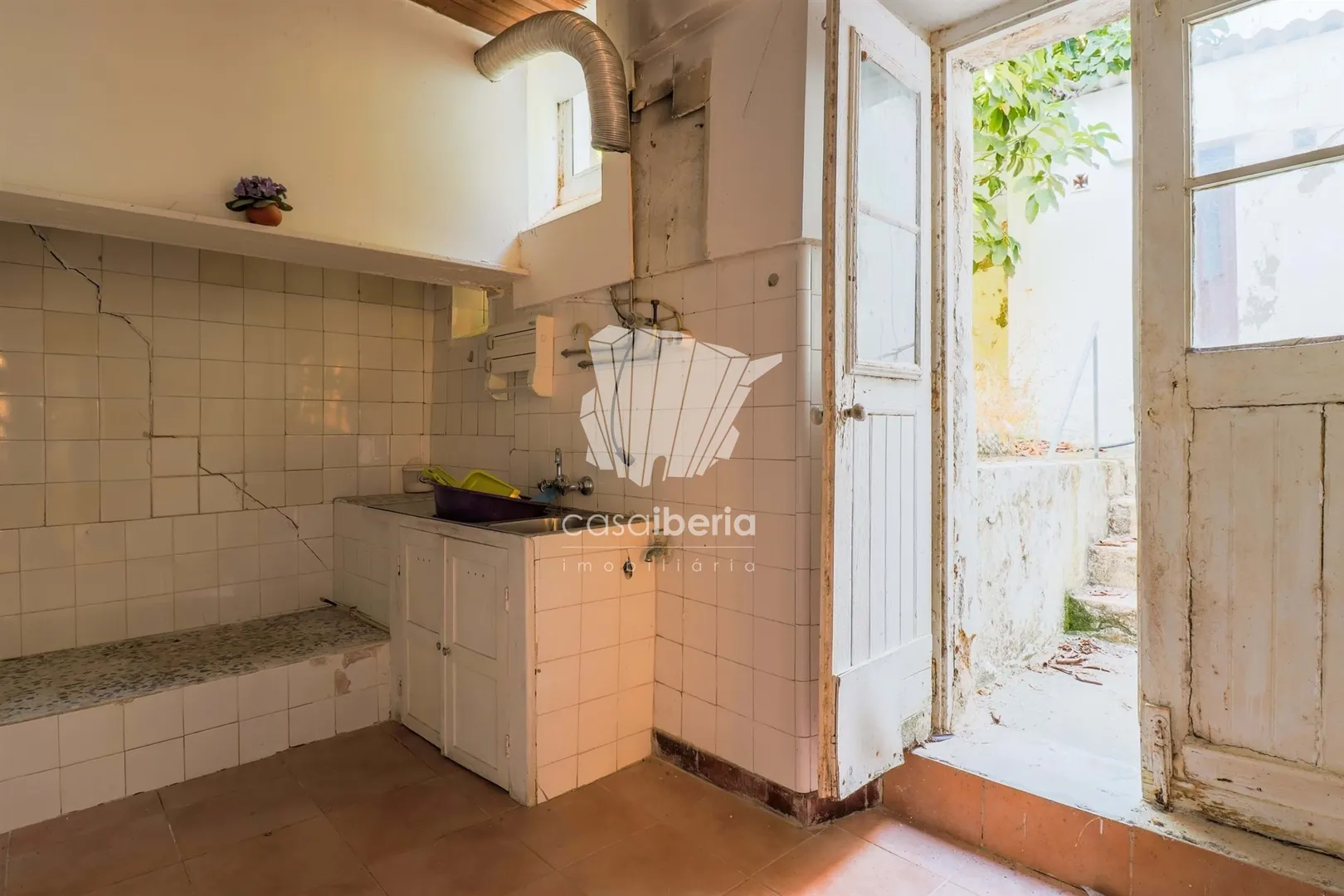 The property, which requires renovation, has several bedrooms, sanitary installations, a kitchen and a private yard with several storage areas.