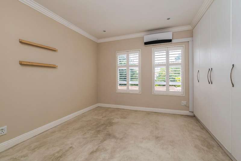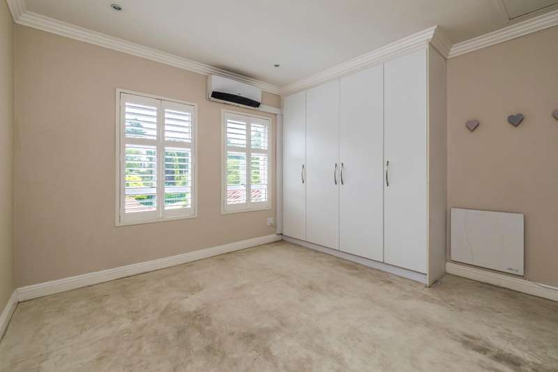 Cement flooring, white plantation shutters and air conditioning/climate control.