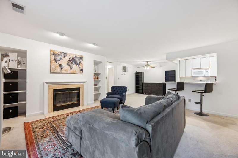 Oversized 1 bedroom on main level w/ patio on the main level. Wood burning fireplace living room open to the dining area and galley kitchen. Stackable washer and dryer in the unit. Off the porch is a large storage unit. The community offers great amenities, including a fitness center, swimming pool, and playground, 2 parking passes, guest parking. One of Montgomery County's most commutable locations-Located just minutes from parks, shopping, 495, 95, and the ICC! Condo association is non warranted, secondary loan or cash only.