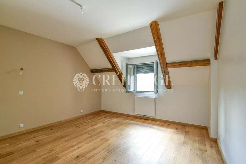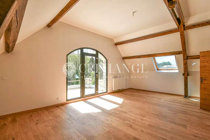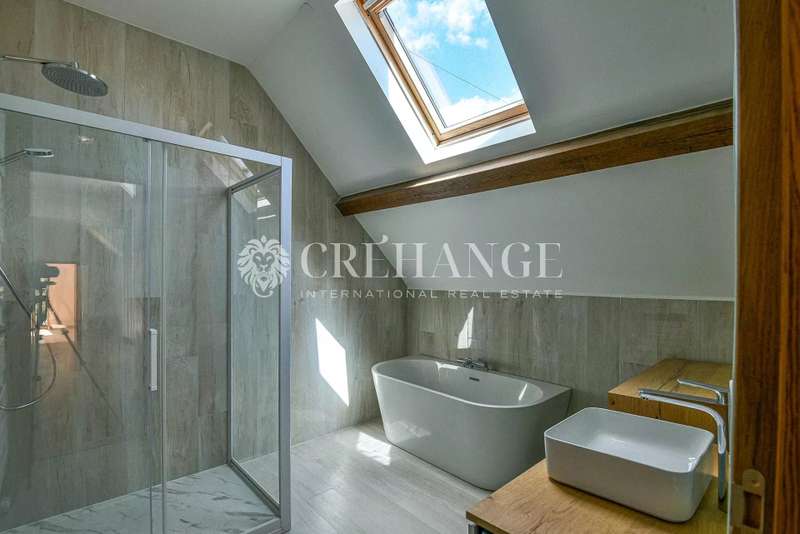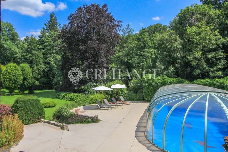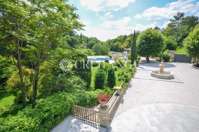 Are you looking for an exceptional property less than an hour from Paris in an idyllic, unoverlooked green setting in one of the most beautiful regions of Ile de France? Then take a look at this property, located at the entrance to a well-known and highly sought-after village in the Yvelines. It is set in 4722m² of landscaped parklands with century-old trees and a 6.5-hectare private forest, and includes a stone Maison de Maître entirely renovated with quality materials and refined choices, and a second house with swimming pool. The 230m² stone house offers 6 main rooms on 2 levels with, on the first floor, an entrance hall with a 40m² fully fitted kitchen equipped with top-of-the-range appliances, a dining room with panoramic views over the park and a 56m² reception room. Upstairs, the sleeping area includes a mezzanine that could be converted into an office, a master suite with its own terrace and bathroom with bath, shower and toilet. Two further bedrooms with their own bathroom and separate toilet. The attic is suitable for conversion. A laundry room and wine cellar are located in the basement. Fittings: automatic gate, intercom, alarm with camera, heat pump heating, triple-glazed iron frames. The 180m² second house offers 5 main rooms on 3 levels: First floor: living room with fireplace, kitchen, separate bedroom with shower room and veranda opening onto the pool. 1st floor: two bedrooms sharing a bathroom and a master suite with shower room and toilet. The attic has been converted into 3 small bedrooms or a games room. An annex connected to the house includes a SPA with sauna and hammam, toilets and a machine room. The house has a large swimming pool under removable cover, with a solarium all around. Less than an hour from Paris via the A13/A14 motorways and the J line to Paris Saint Lazare, which is a 10-minute drive from Bréval. Information on the risks to which this property is exposed is available on the Géorisques website https://www.georisques.gouv.fr
