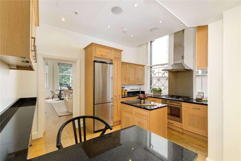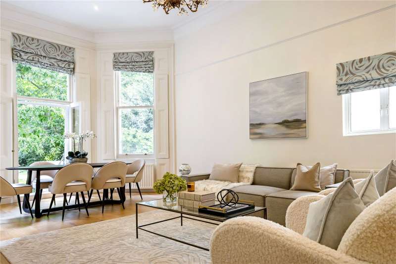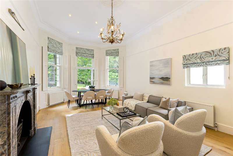 Set on the raised ground floor of a well run converted period building, this strikingly presented 2 double bedroom flat has wonderful high ceilings and period proportions, boasting rarely available direct access to peaceful communal gardens.